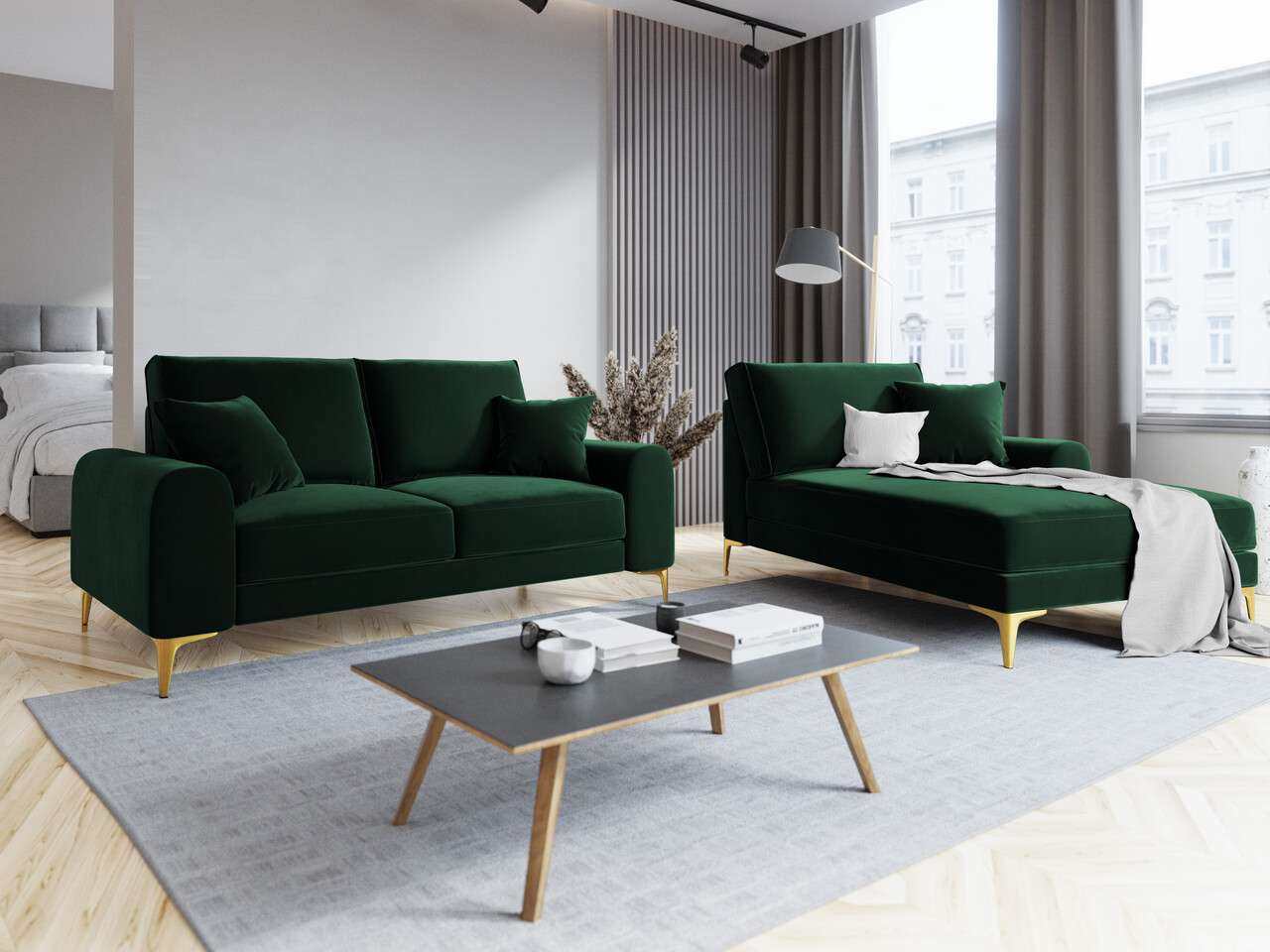 Canapea, Madara, Mazzini Sofas, 2 locuri, gold legs, 172x102x90 cm, catifea, verde bottle