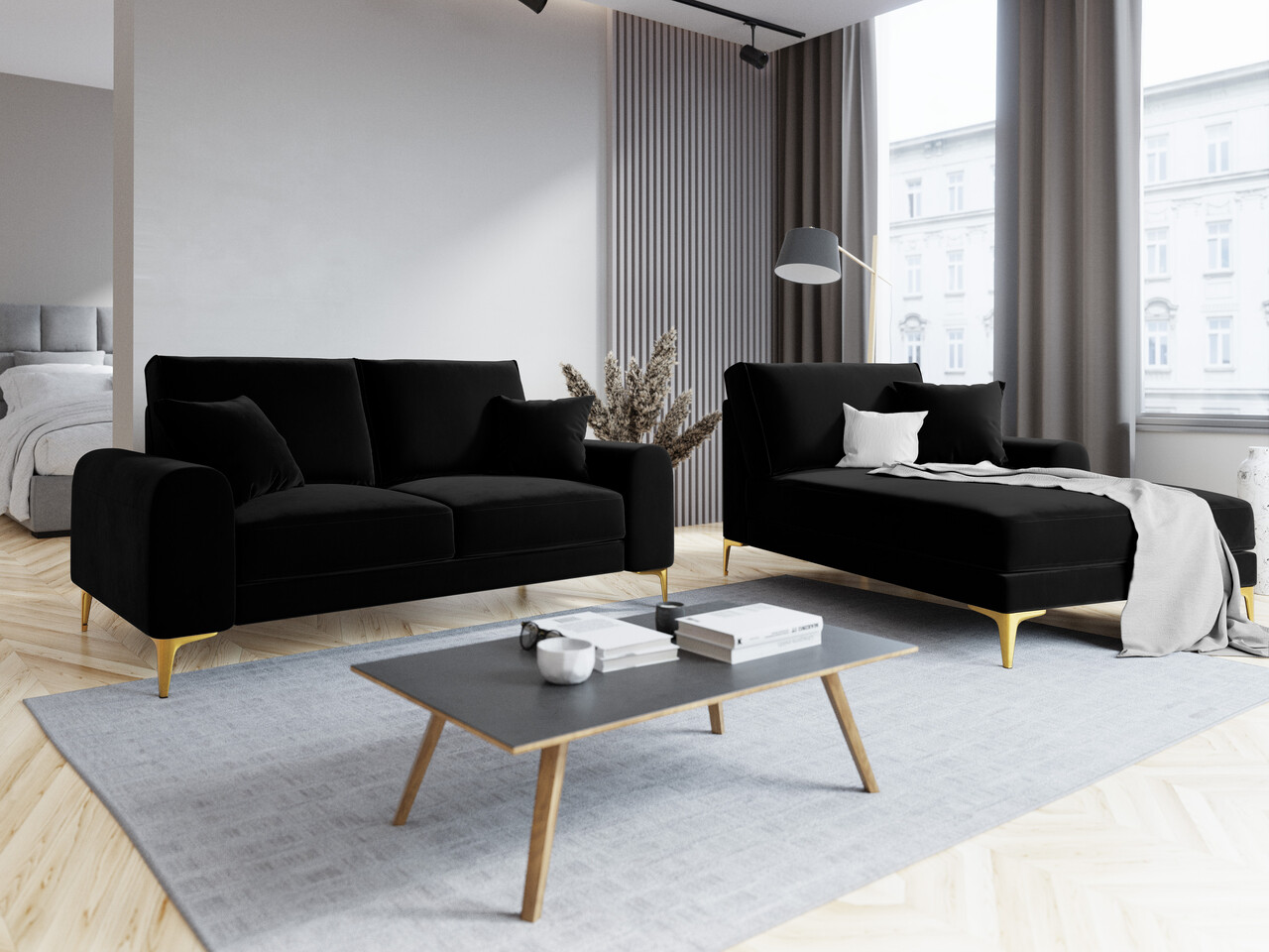 Canapea, Madara, Mazzini Sofas, 2 locuri, gold legs, 172x102x90 cm, catifea, negru