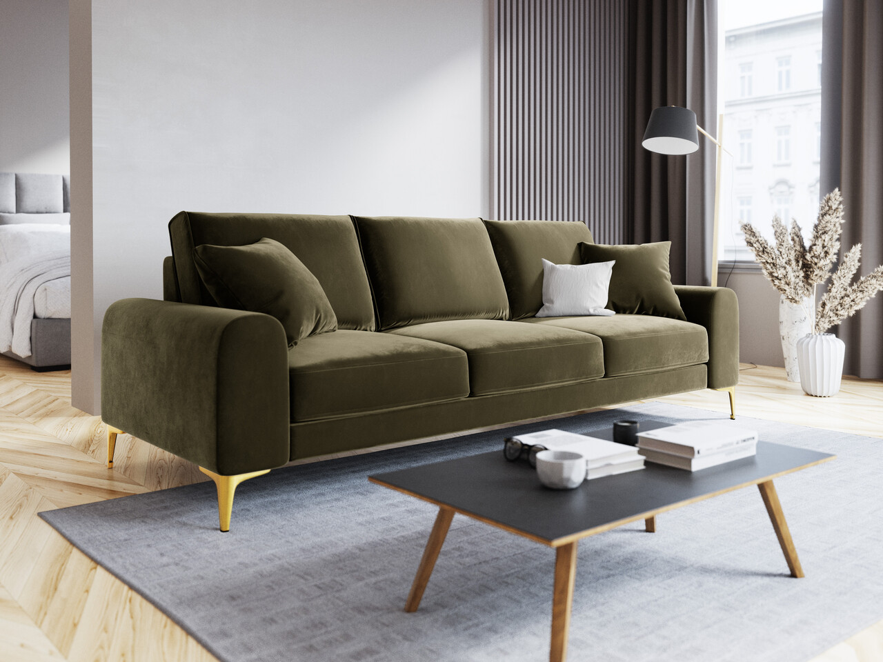 Canapea, Madara, Mazzini Sofas, 3 locuri, gold legs, 222x102x90 cm, catifea, verde
