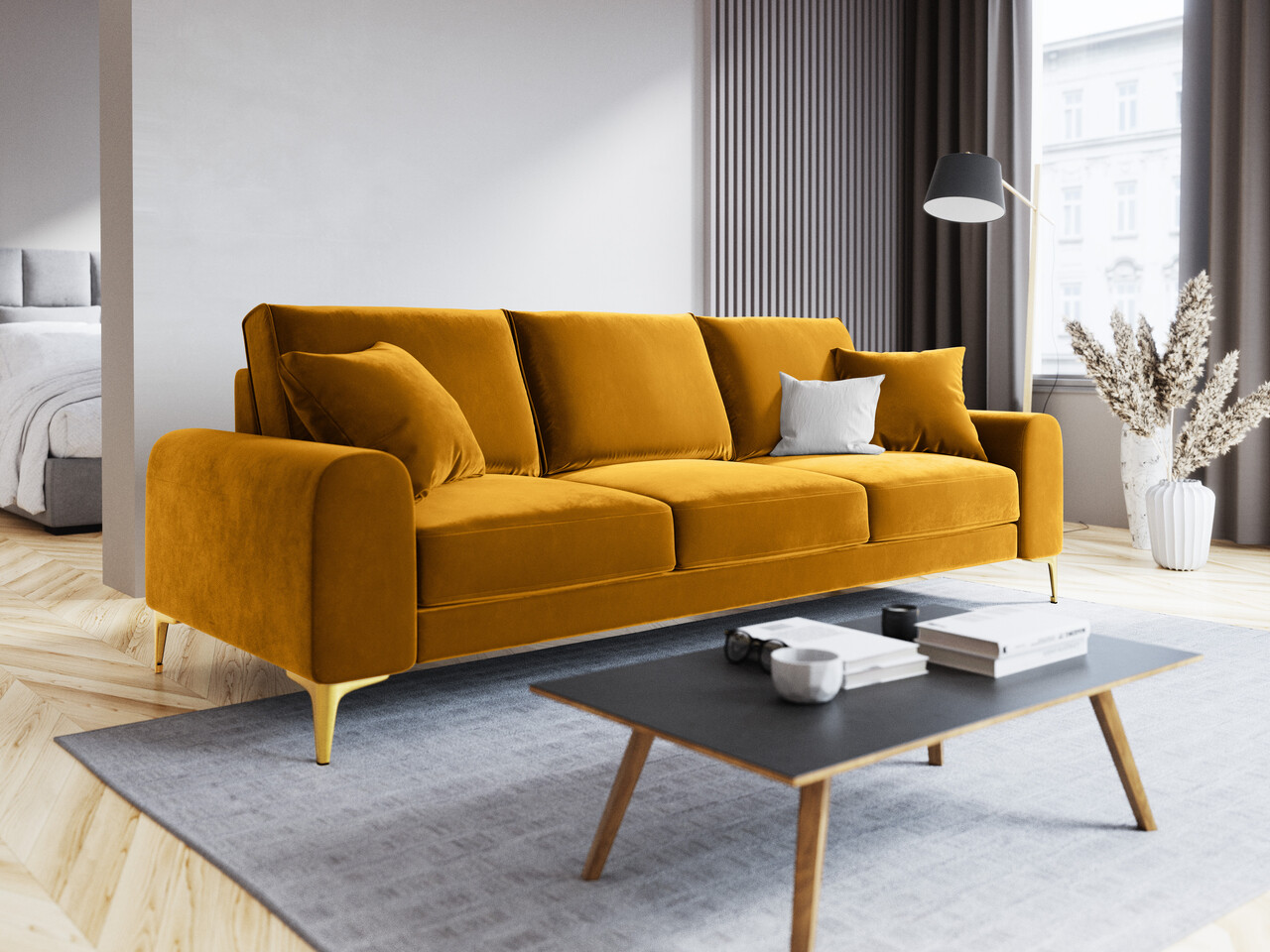 Canapea, Madara, Mazzini Sofas, 3 locuri, gold legs, 222x102x90 cm, catifea, galben