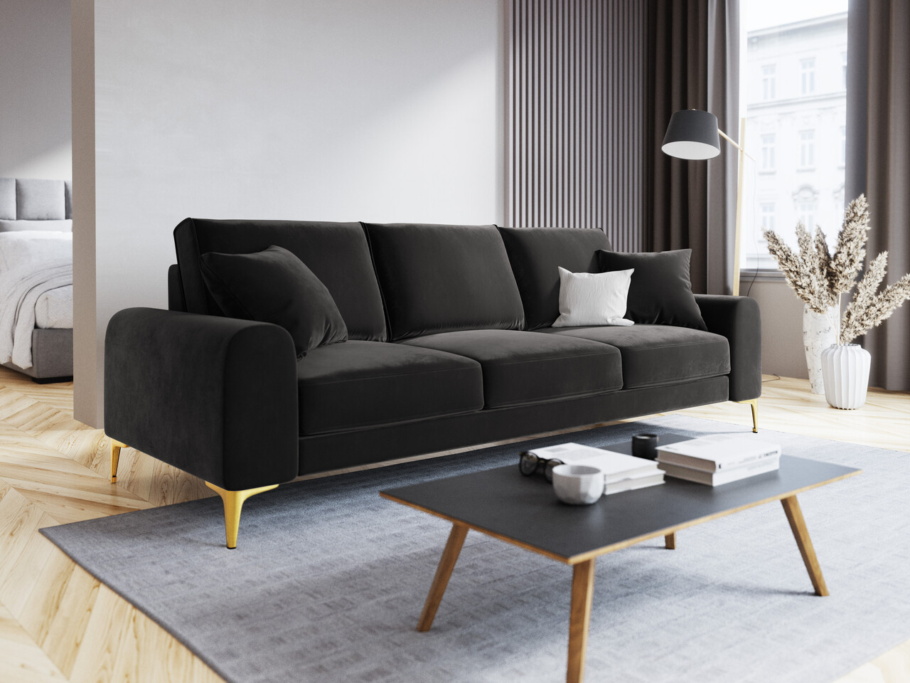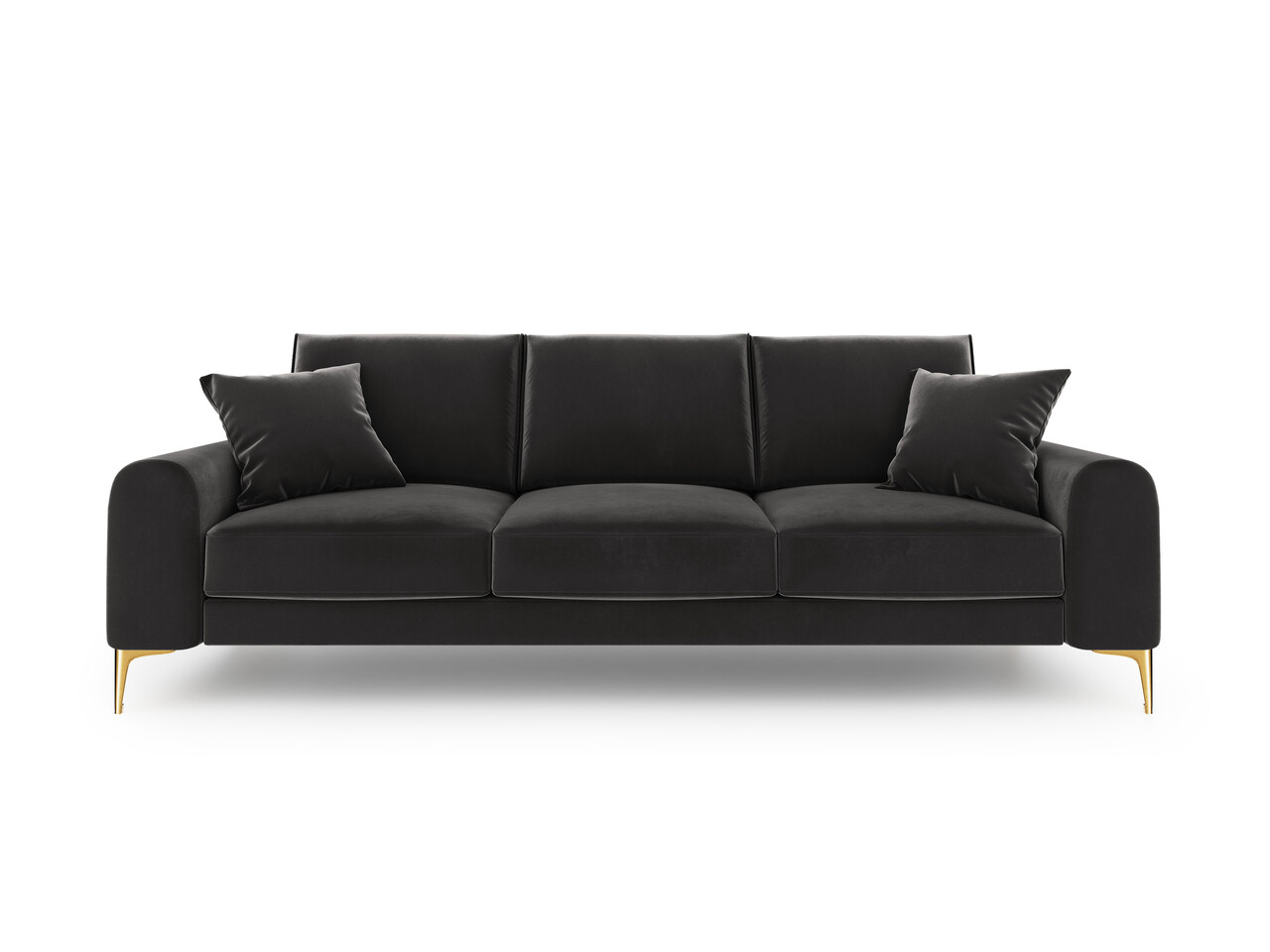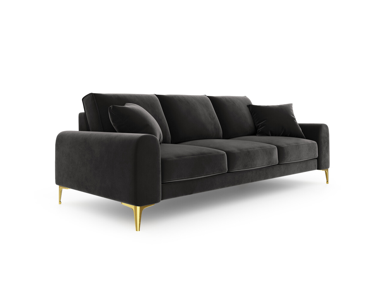 Canapea, Madara, Mazzini Sofas, 3 locuri, gold legs, 222x102x90 cm, catifea, gri inchis