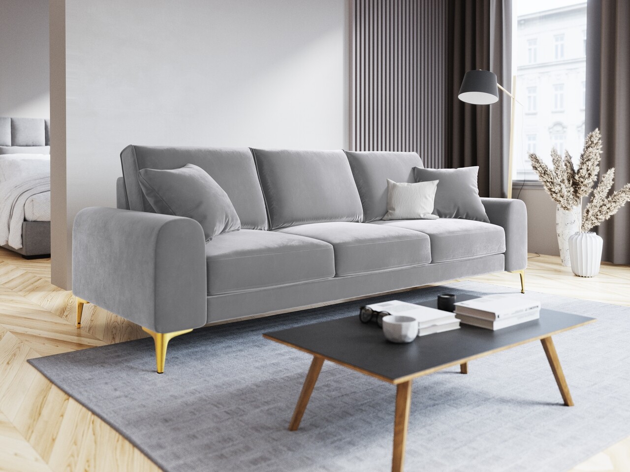 Canapea, Madara, Mazzini Sofas, 4 locuri, gold legs, 237x102x90 cm, catifea, argintiu