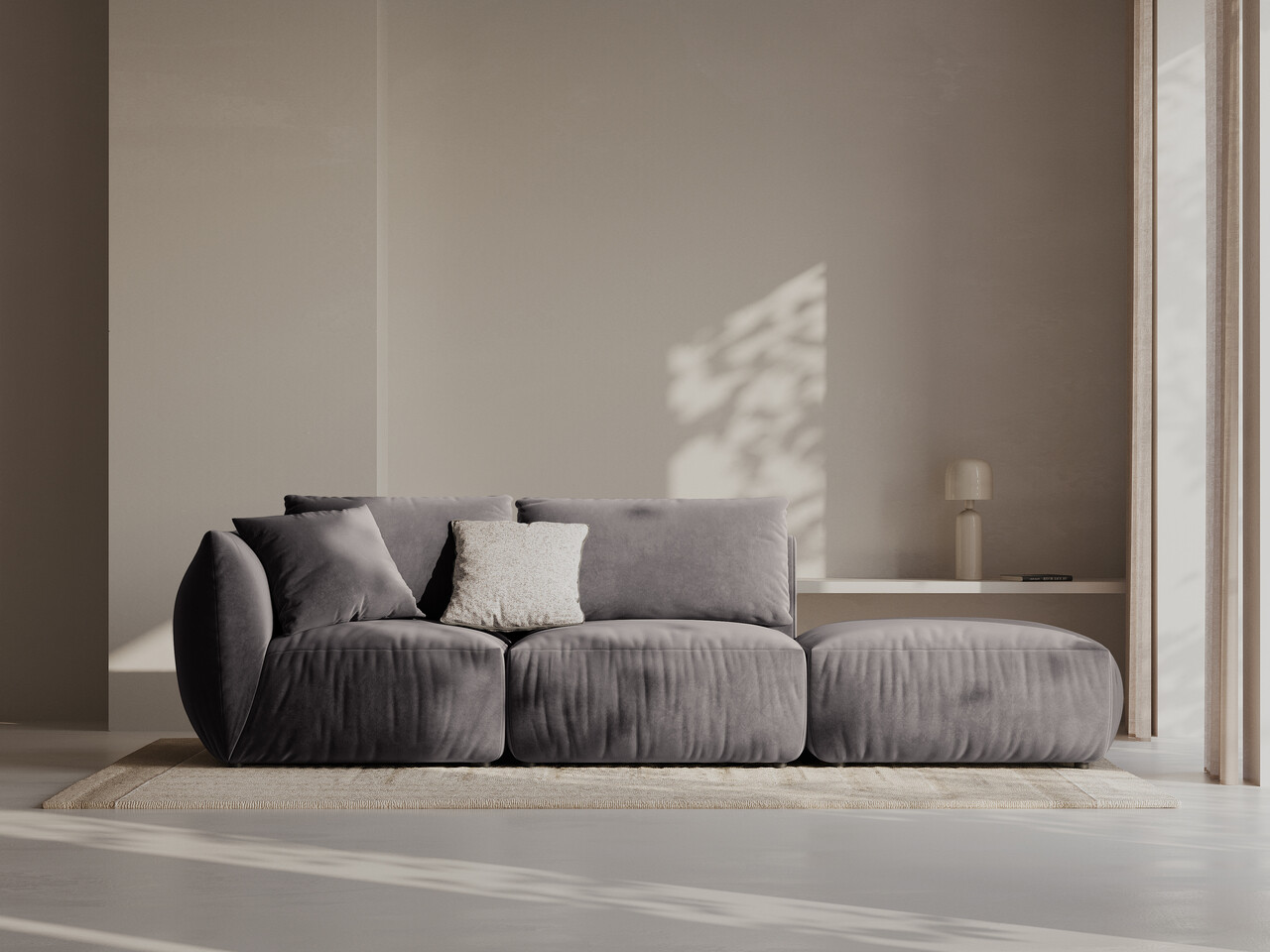 Canapea modulara 3 locuri cotiera dreapta, Chris-184, Micadoni Home, 315x100x80 cm, catifea, gri inchis