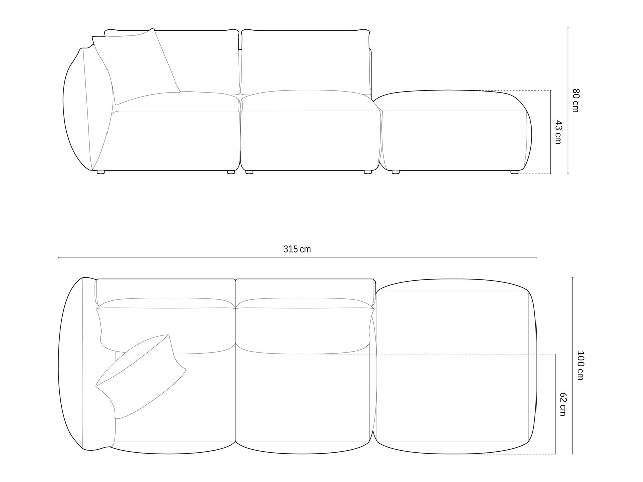 Canapea modulara 3 locuri cotiera dreapta, Chris-259, Micadoni Home, 315x100x80 cm, tesatura structurata chenille, bej sand