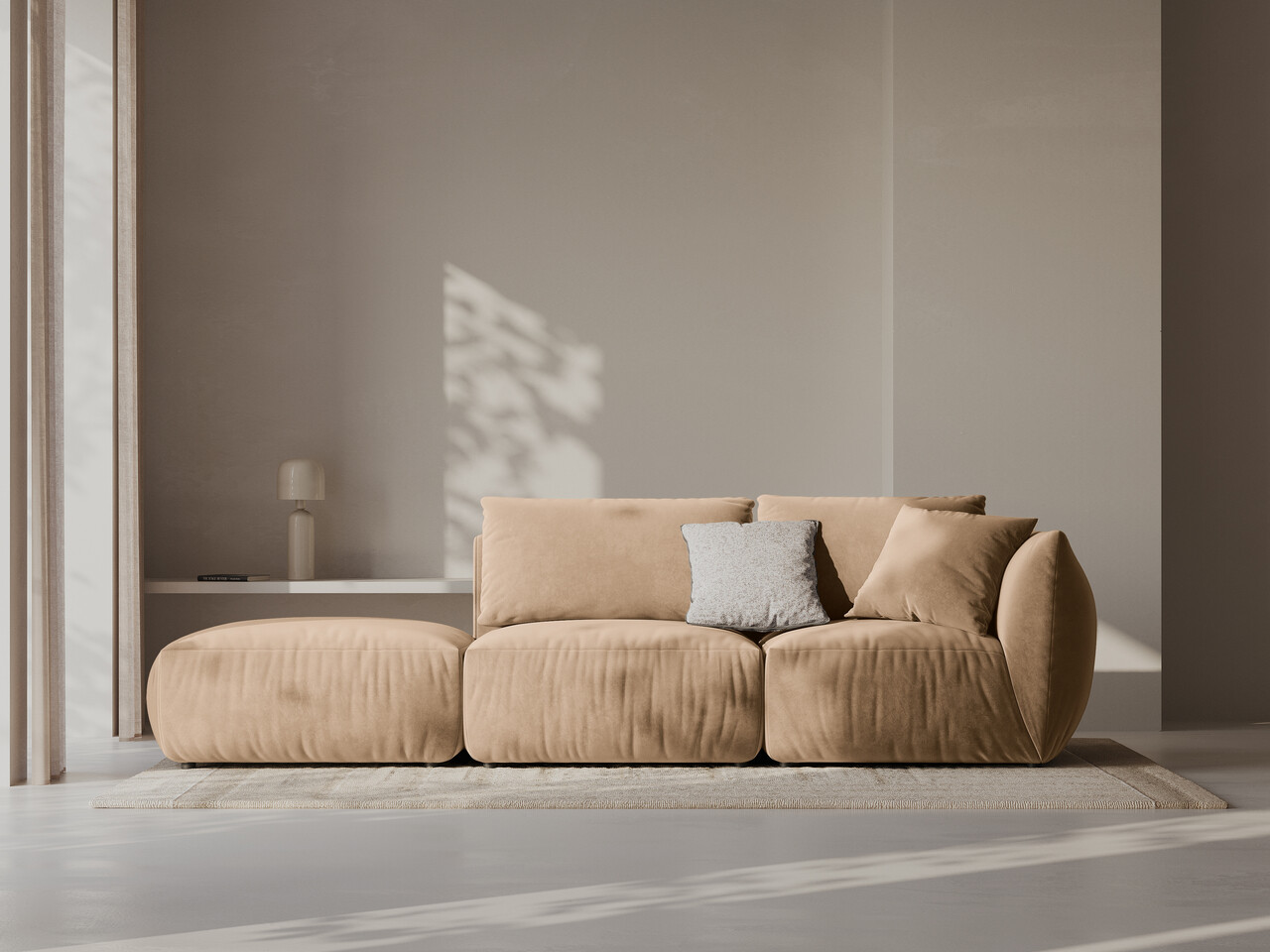 Canapea modulara 3 locuri cotiera stanga, Chris-184, Micadoni Home, 315x100x80 cm, catifea, bej sand