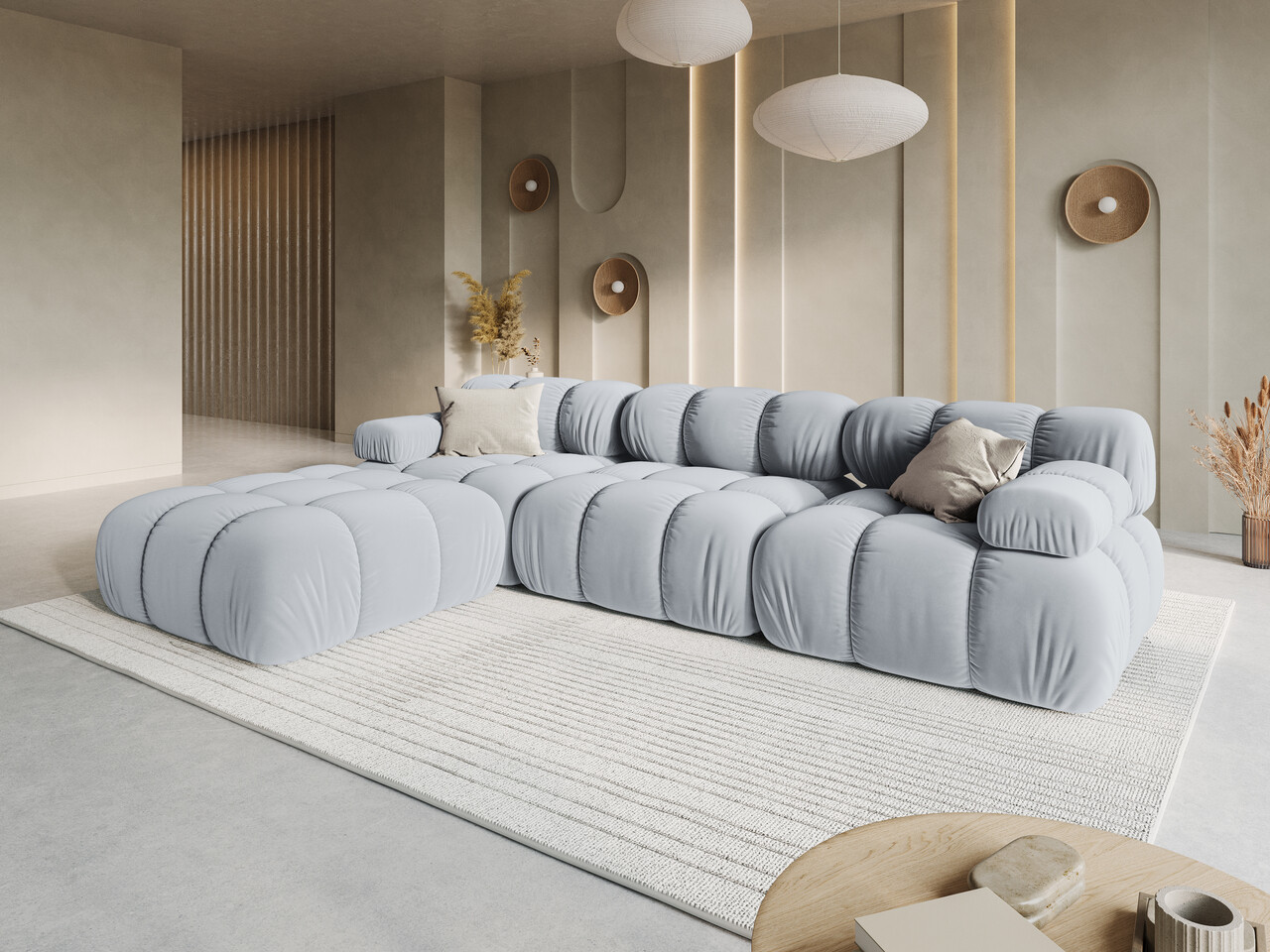 Canapea modulara 4 locuri, Bellis, Micadoni Home, BL, 282x188x70 cm, catifea, albastru deschis