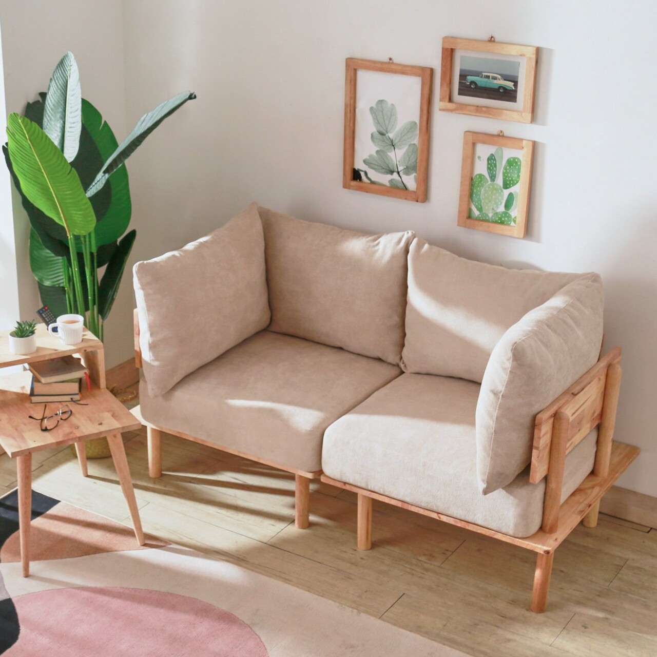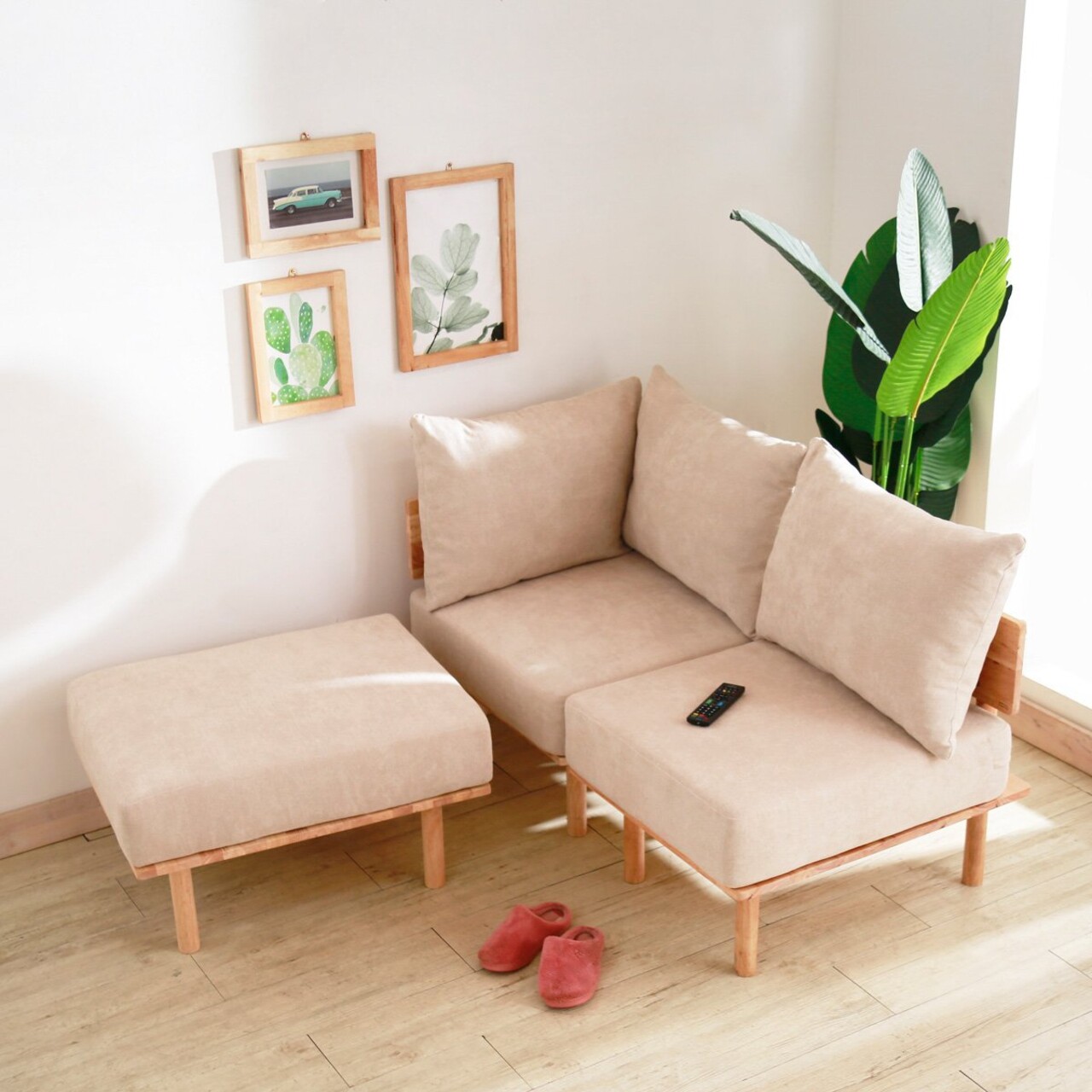 Canapea modulara Seri, Homla, 74x86x86 cm, lemn/poliester, bej
