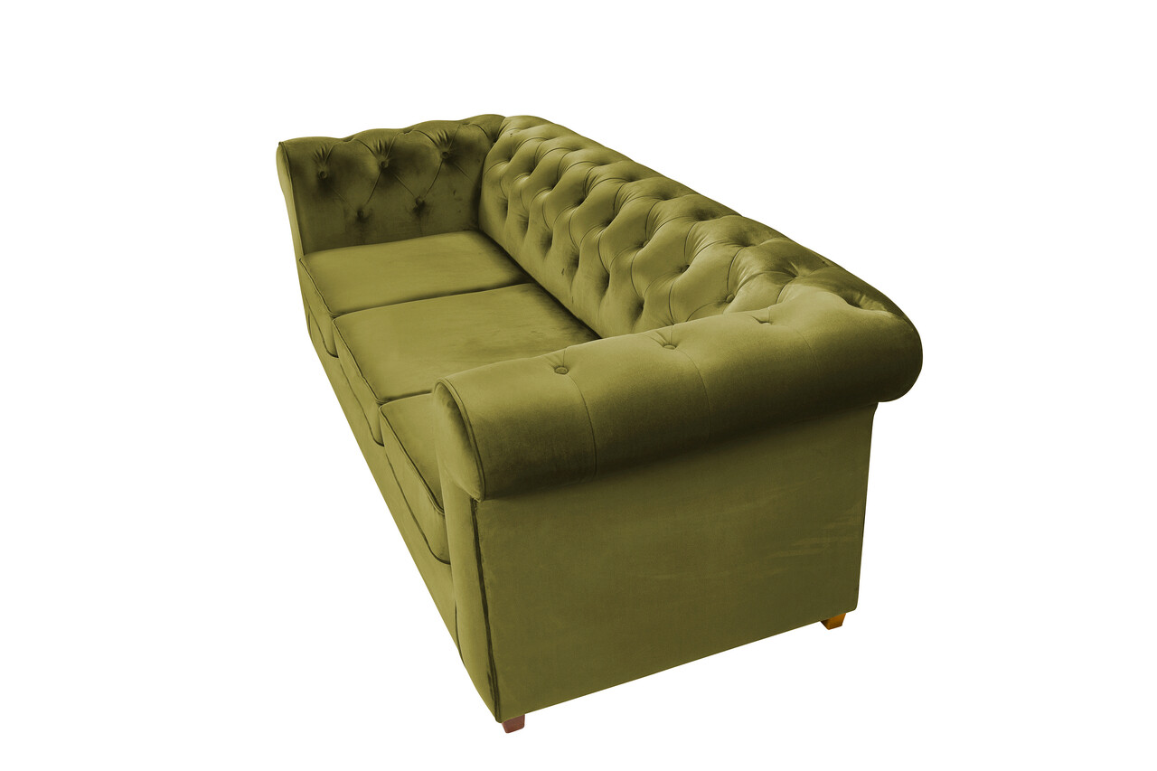 Canapea Oxford Chesterfield, 93x214x75 cm, 3 locuri, Olive