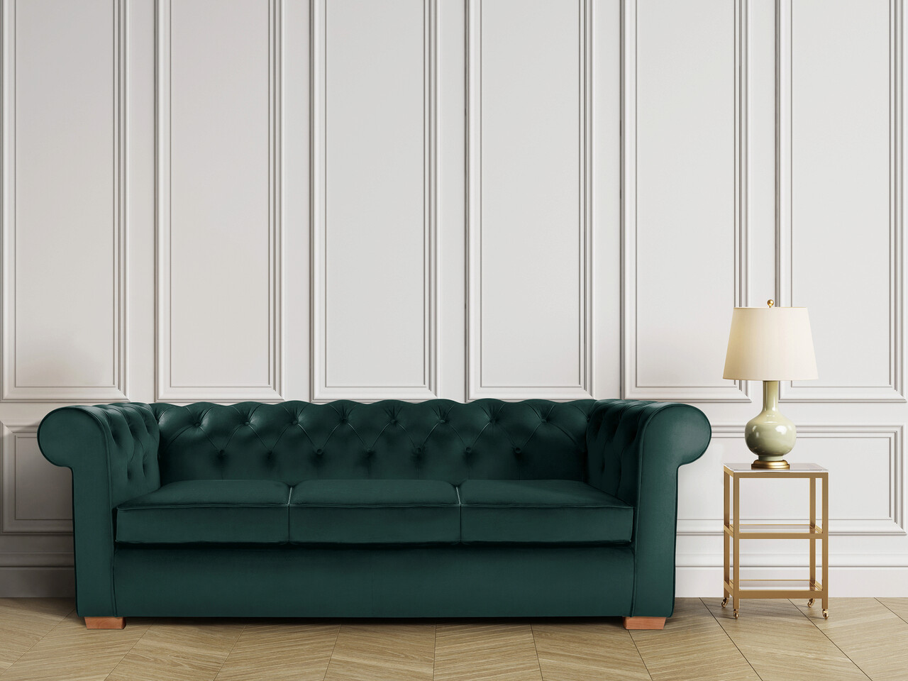 Canapea Oxford Chesterfield, 93x214x75 cm, 3 locuri, Verde