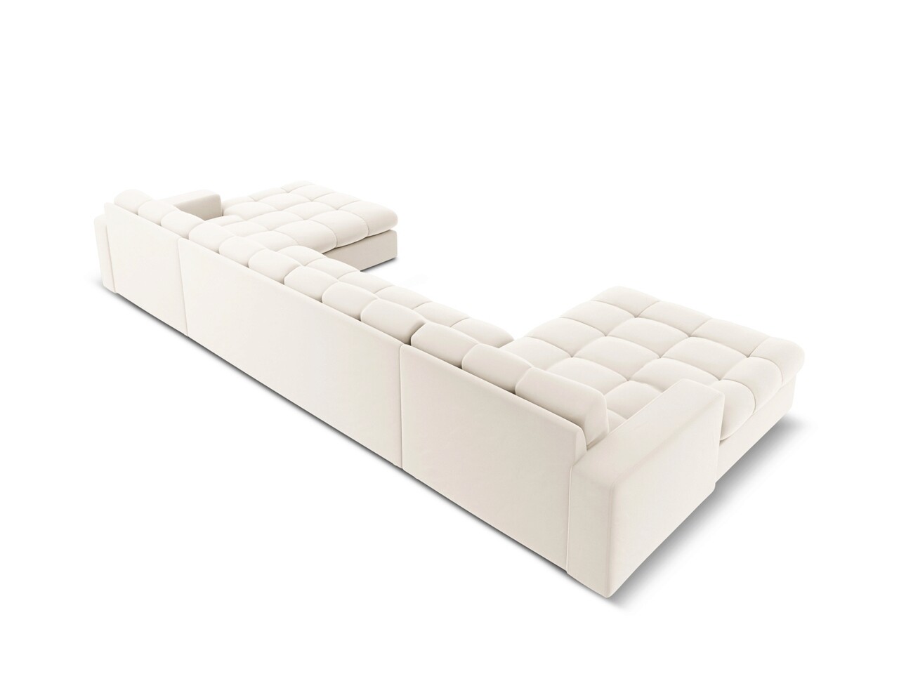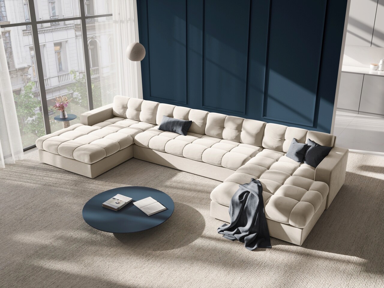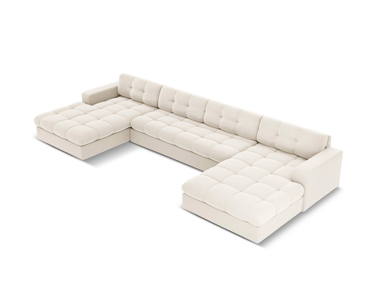 Canapea panoramica 5 locuri, Justin, Micadoni Home, BL, 294x160x72 cm, catifea, bej deschis