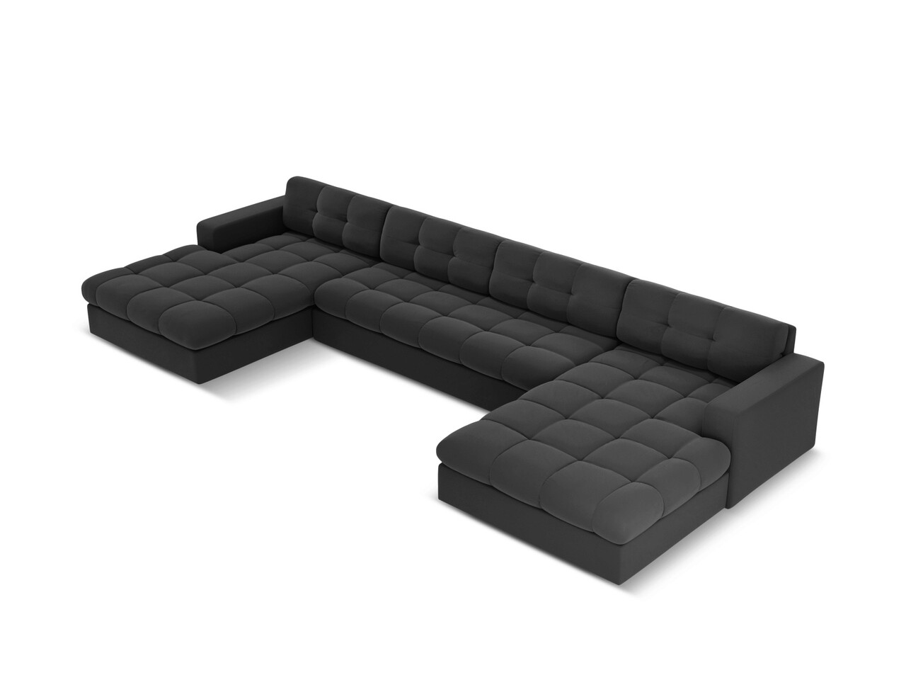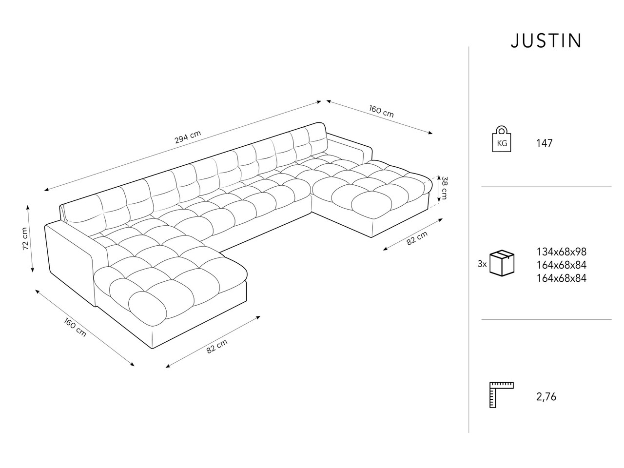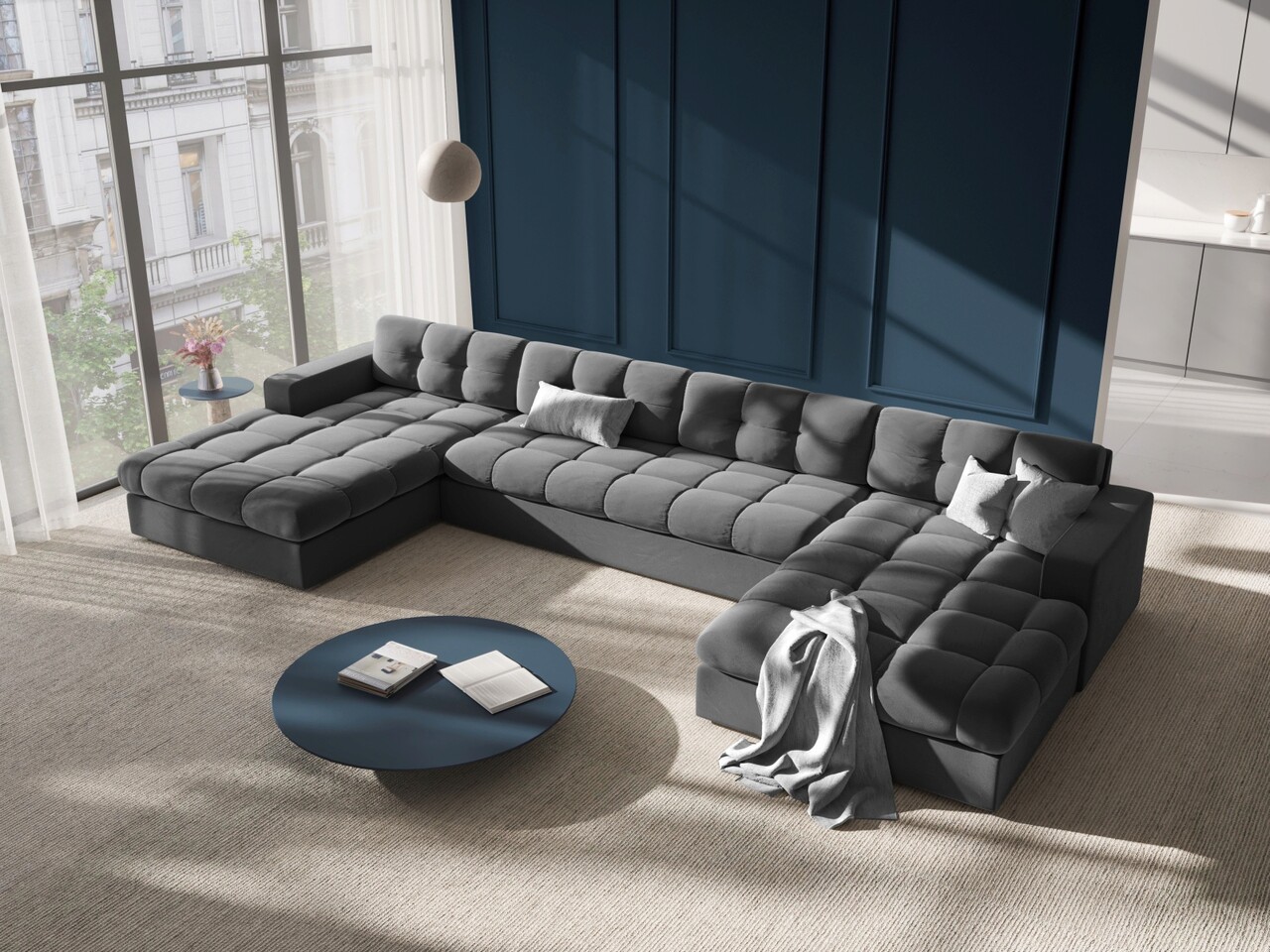Canapea panoramica 5 locuri, Justin, Micadoni Home, BL, 294x160x72 cm, catifea, gri