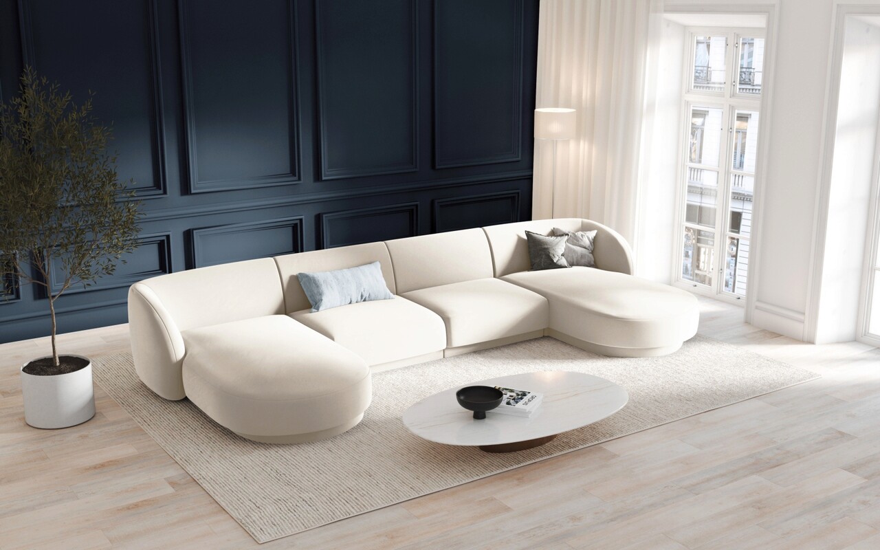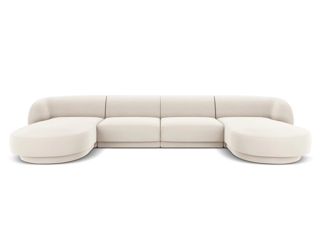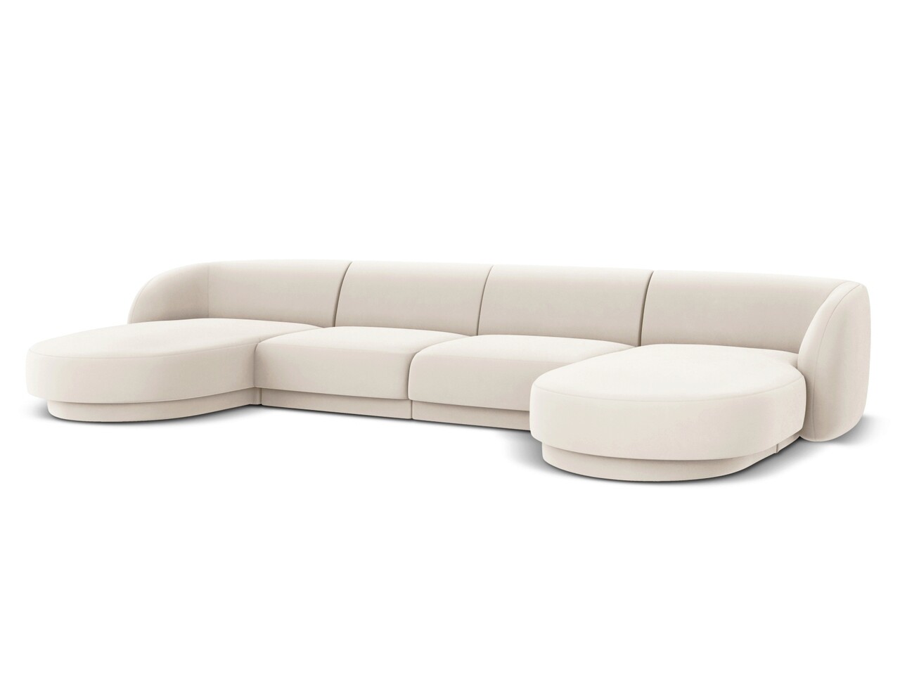 Canapea panoramica 5 locuri, Miley, Micadoni Home, BL, 334x155x74 cm, catifea, bej deschis