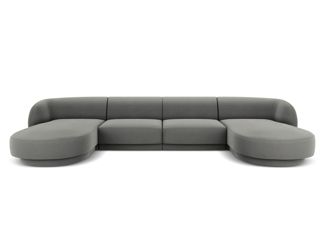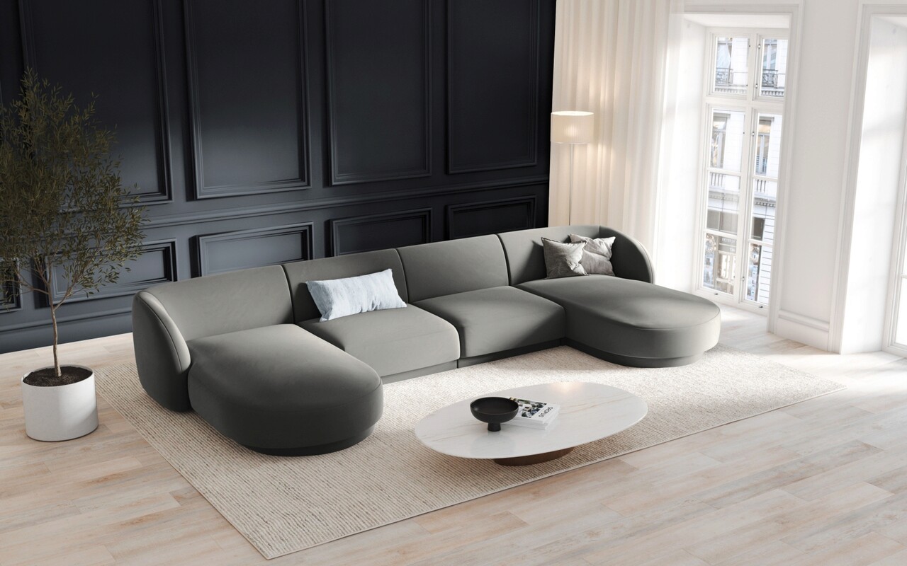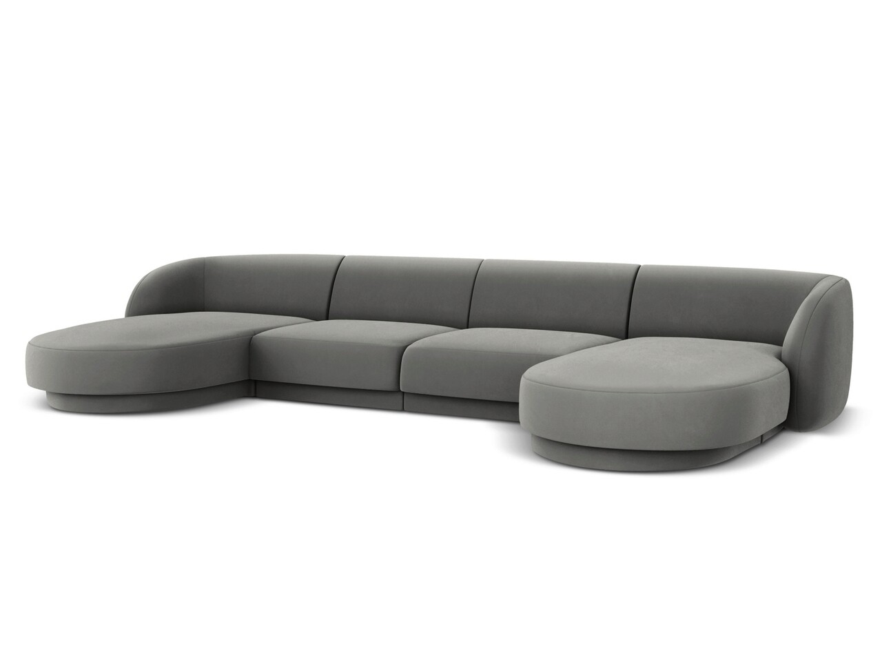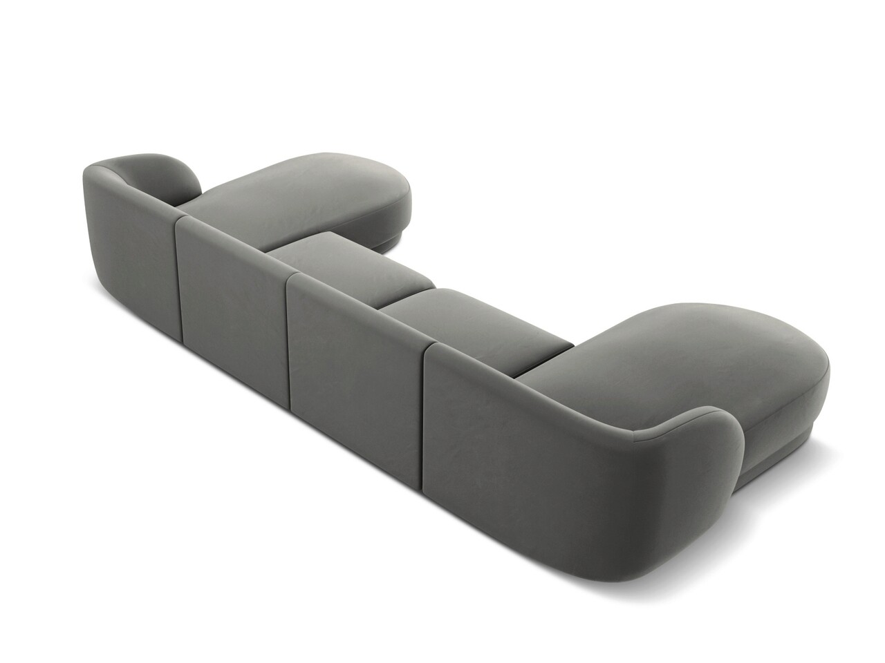 Canapea panoramica 5 locuri, Miley, Micadoni Home, BL, 334x155x74 cm, catifea, gri deschis