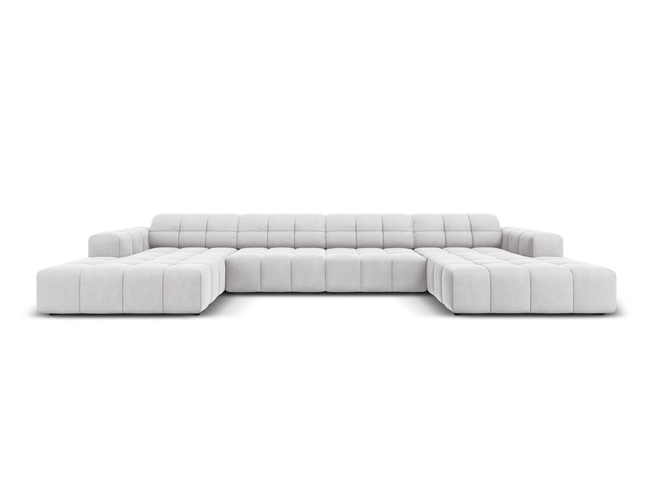 Canapea panoramica 6 locuri, Jennifer-51, Micadoni Home, 364x166x70 cm, catifea, argintiu