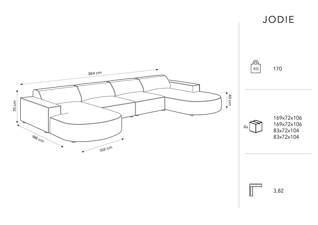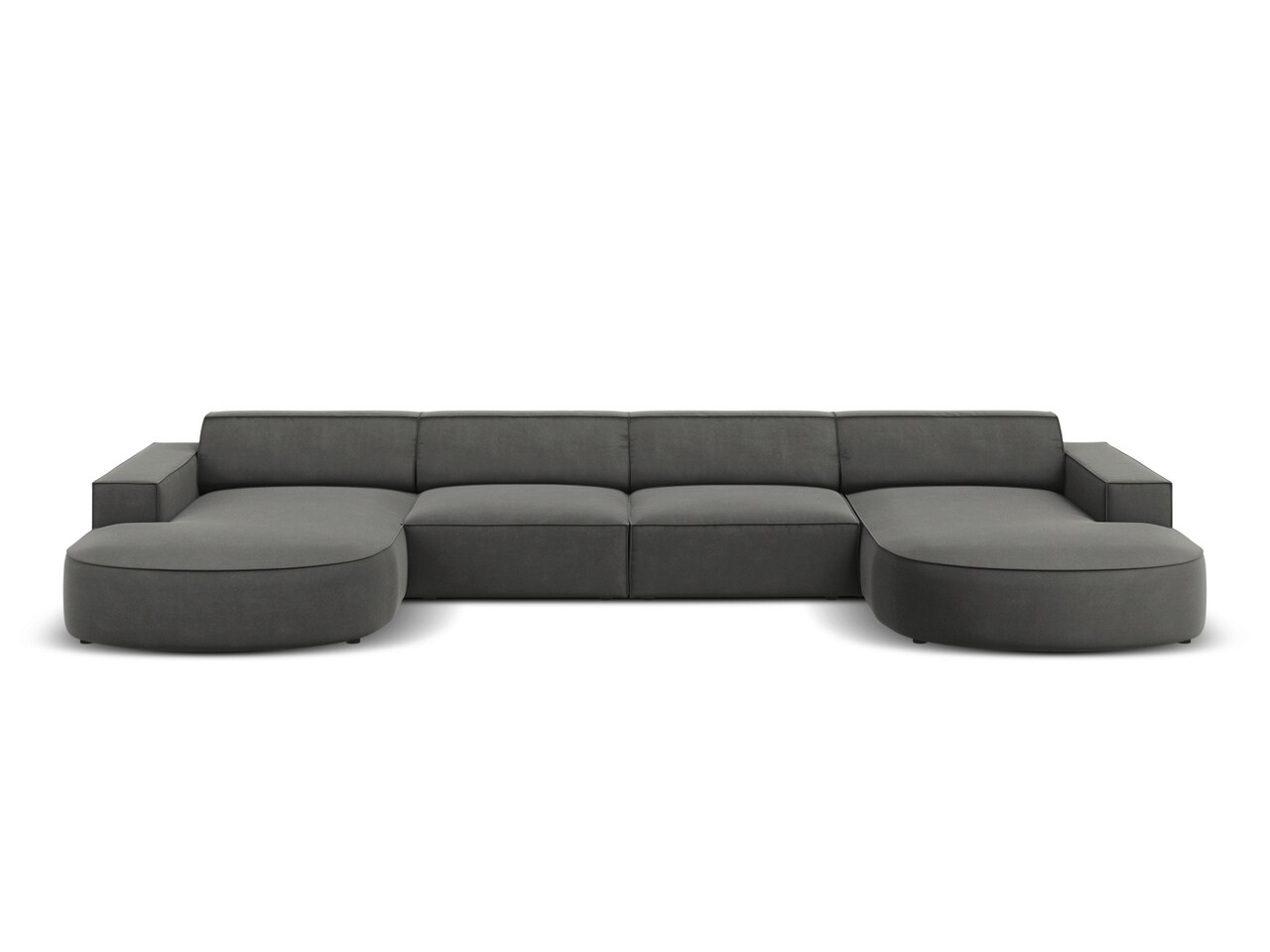 Canapea panoramica 6 locuri, Jodie, Micadoni Home, BL, forma rotunjita, 364x166x70 cm, catifea, gri deschis