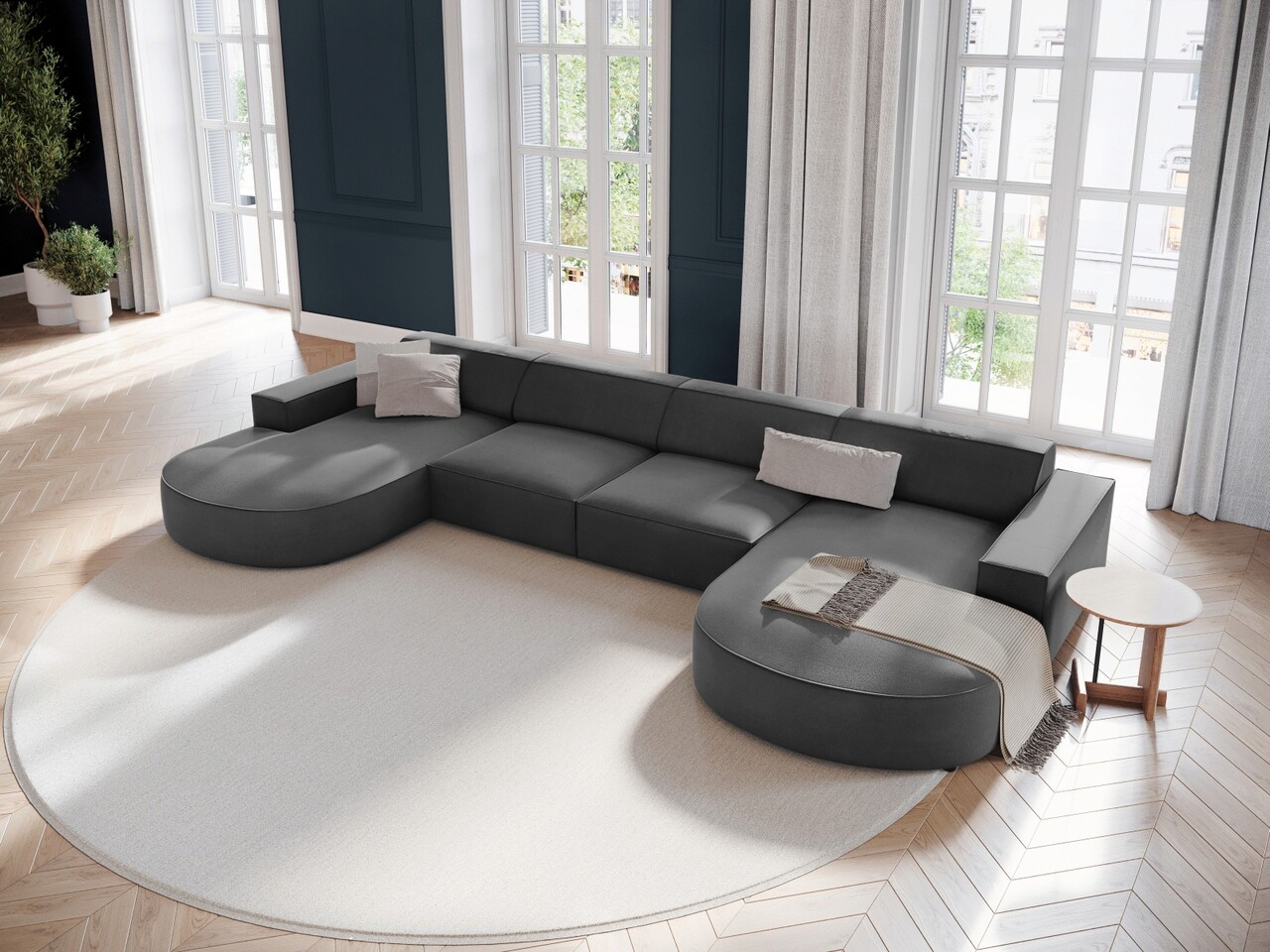 Canapea panoramica 6 locuri, Jodie, Micadoni Home, BL, forma rotunjita, 364x166x70 cm, catifea, gri