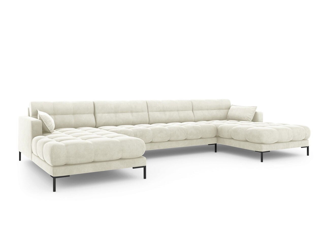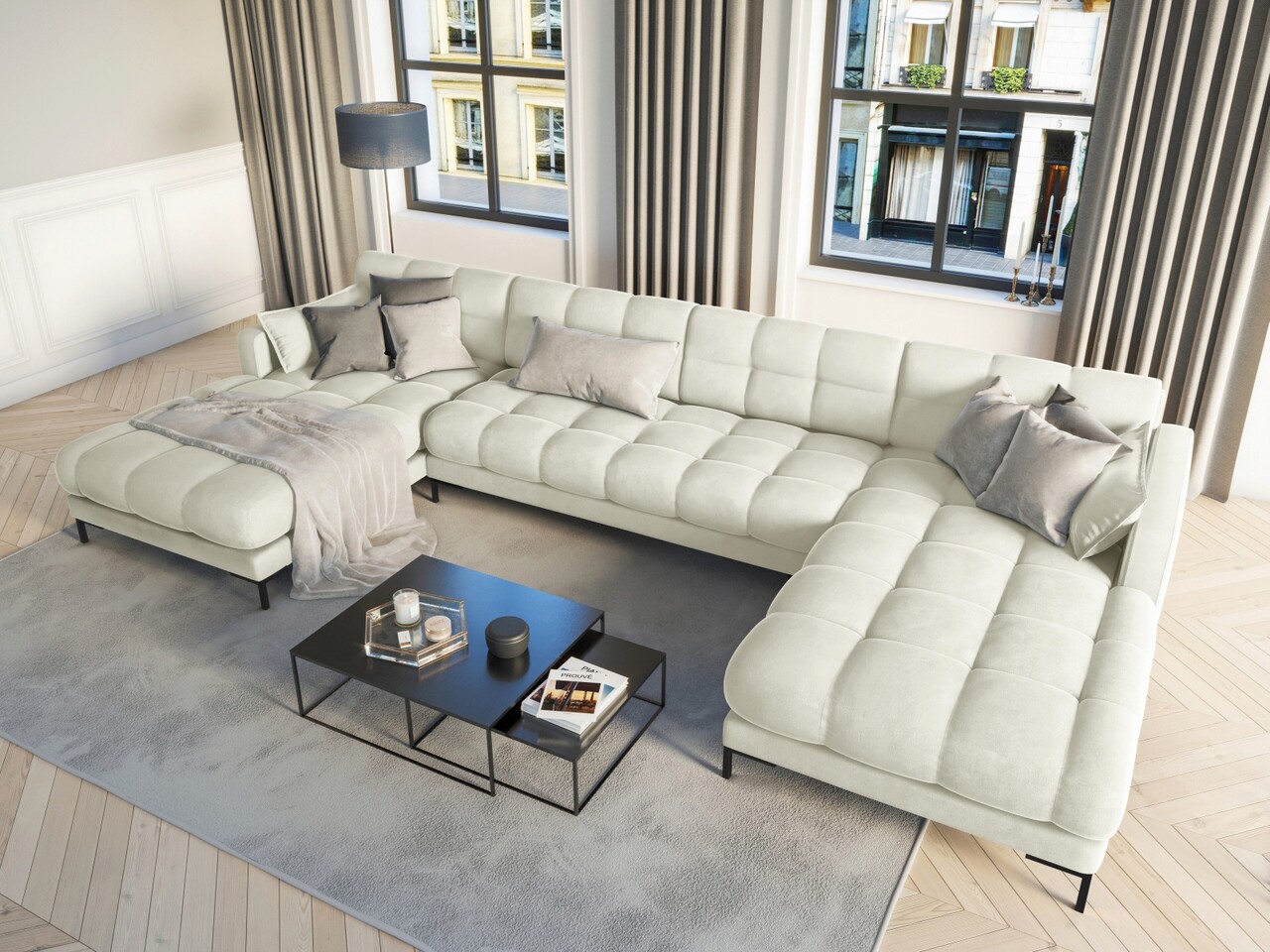 Canapea panoramica 6 locuri, Mamaia, Micadoni Home, BL, 383x185x75 cm, catifea, bej deschis