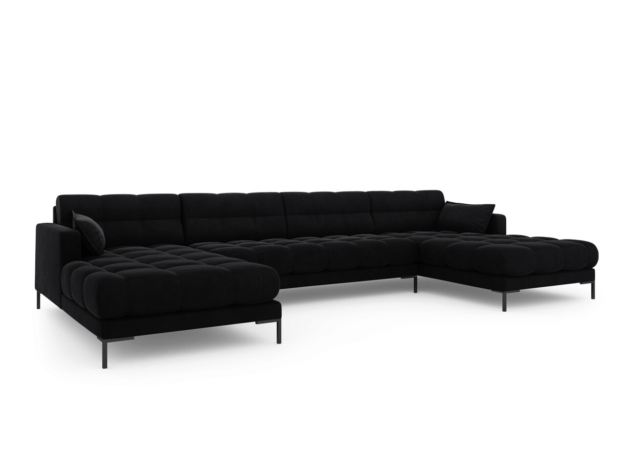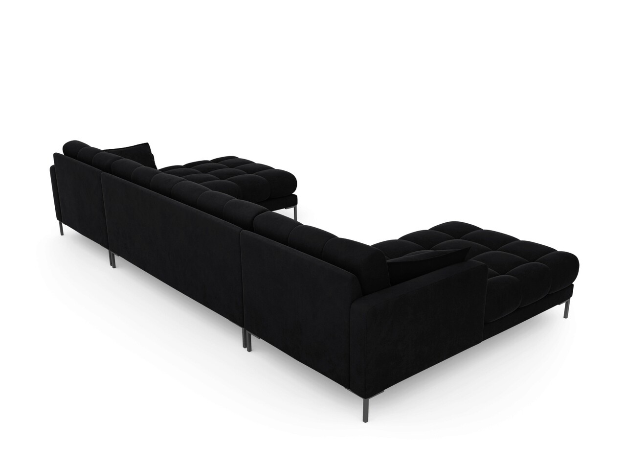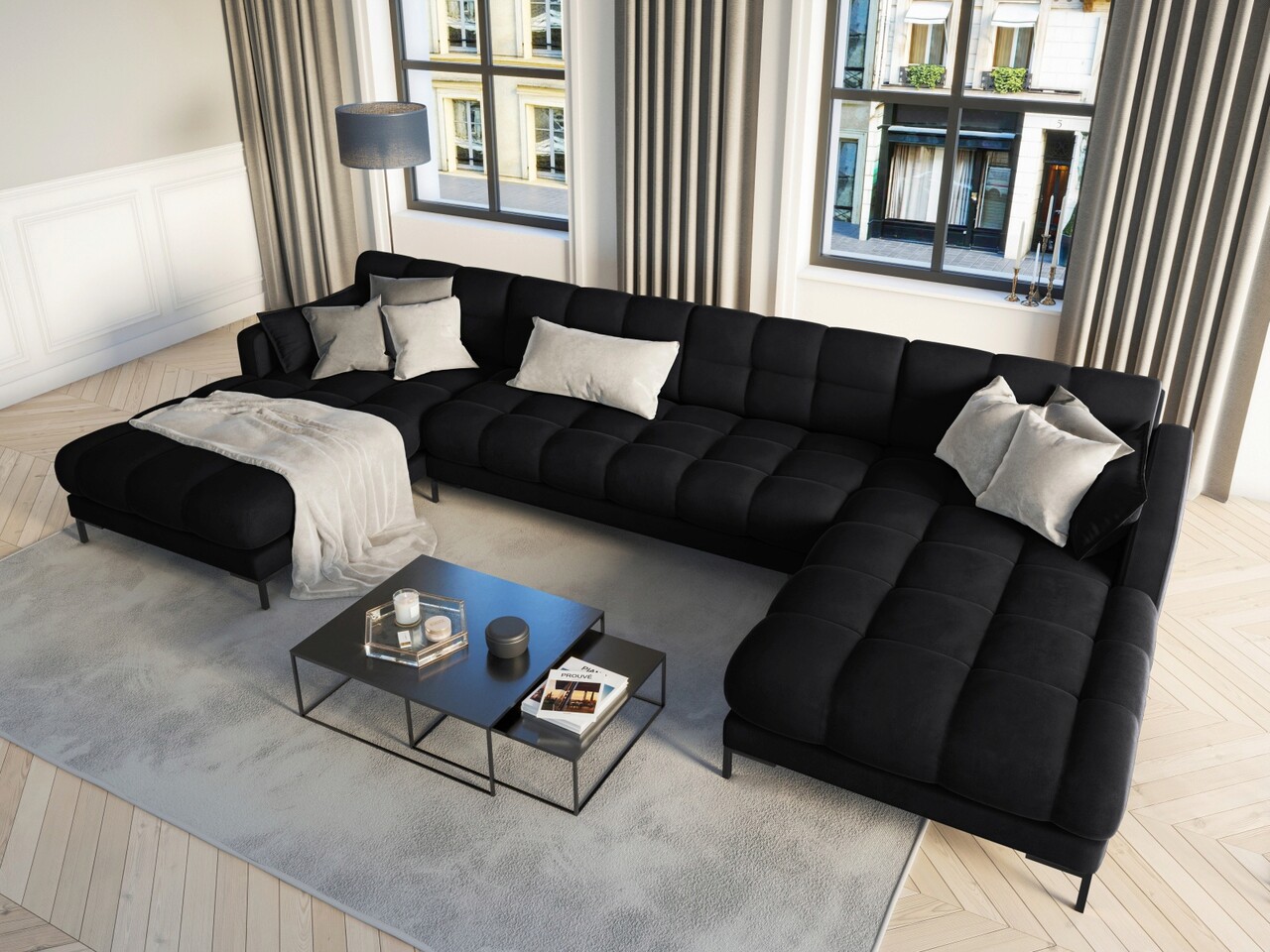 Canapea panoramica 6 locuri, Mamaia, Micadoni Home, BL, 383x185x75 cm, catifea, negru