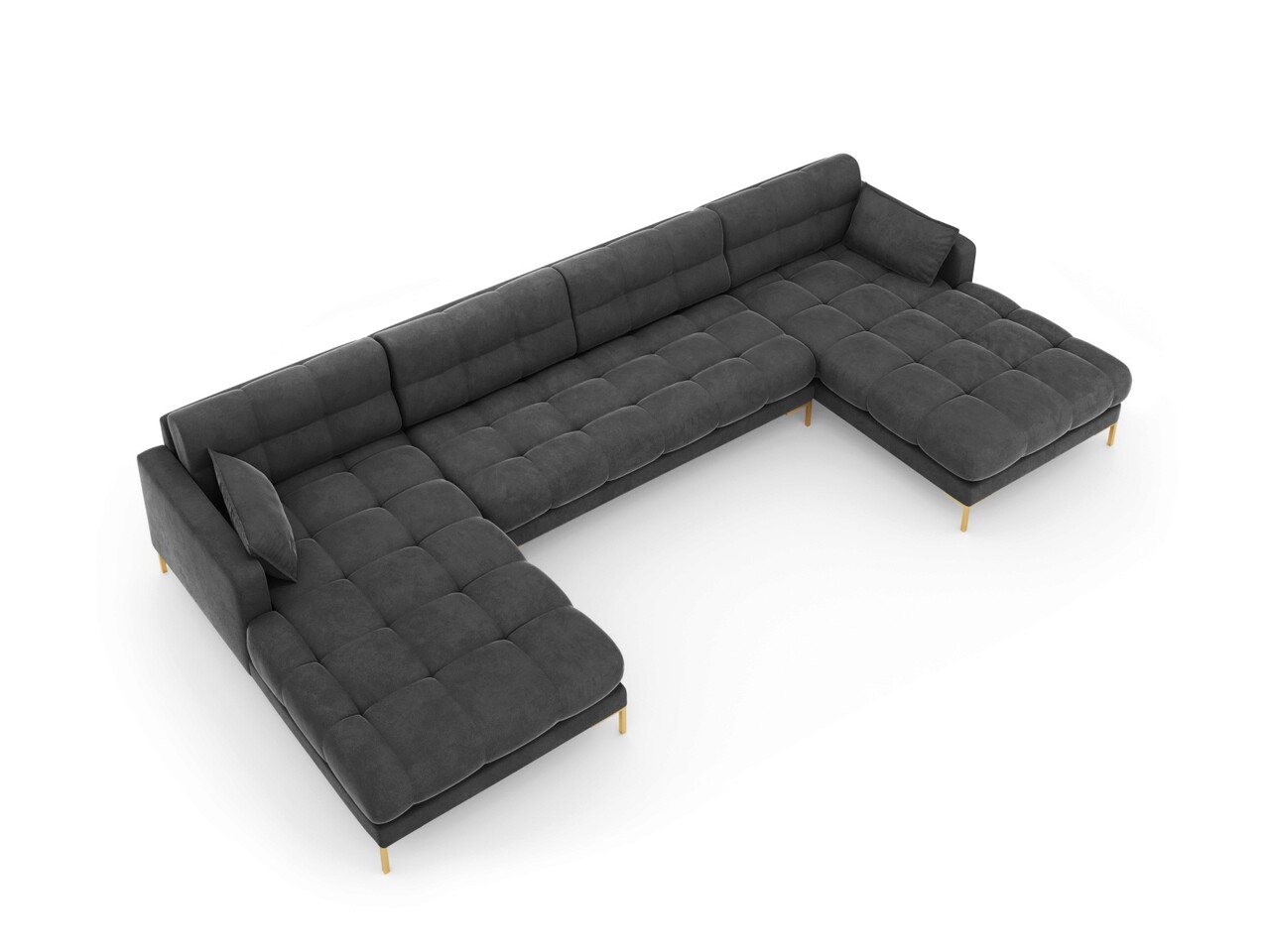 Canapea panoramica 6 locuri, Mamaia, Micadoni Home, GL, 383x185x75 cm, catifea, gri inchis