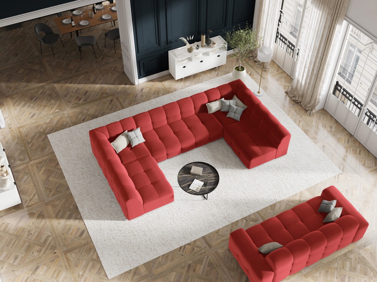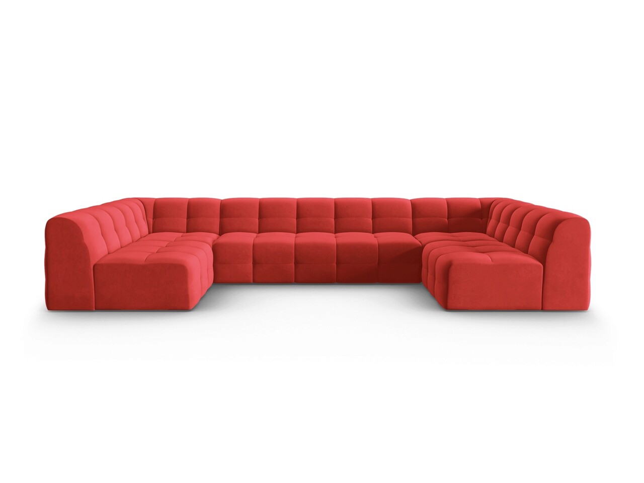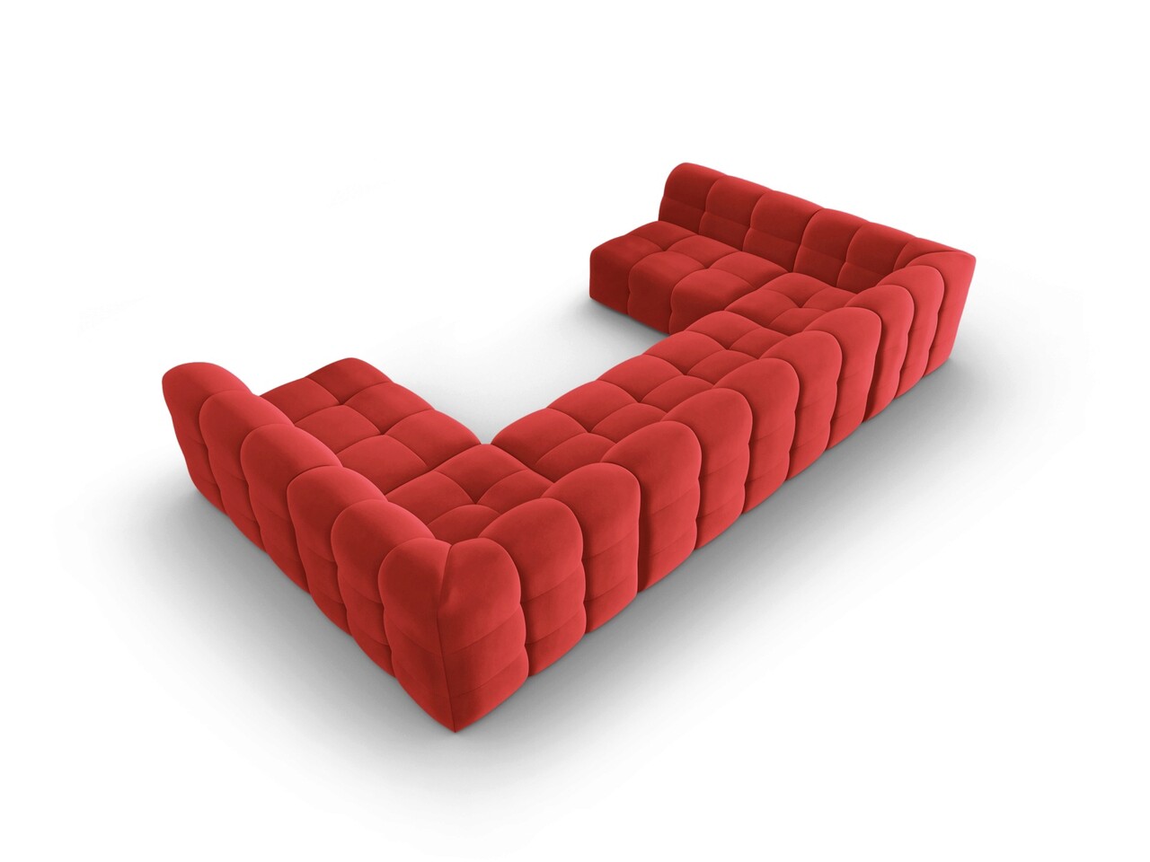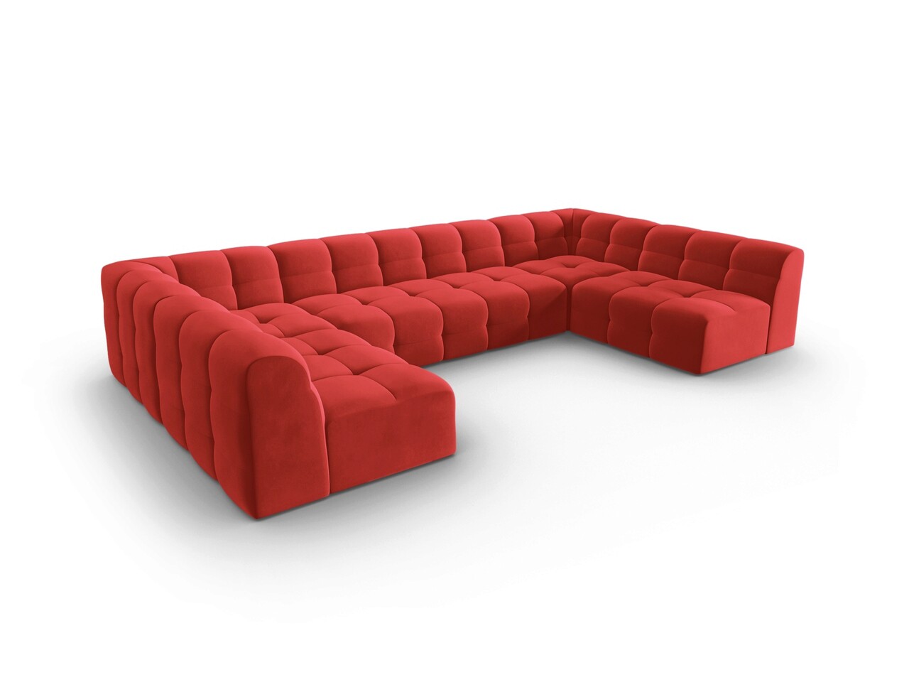 Canapea panoramica 7 locuri, Kendal, Micadoni Home, BL, 372x203x79 cm, catifea, rosu