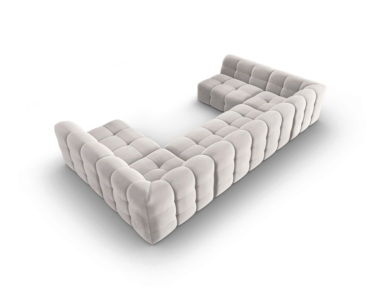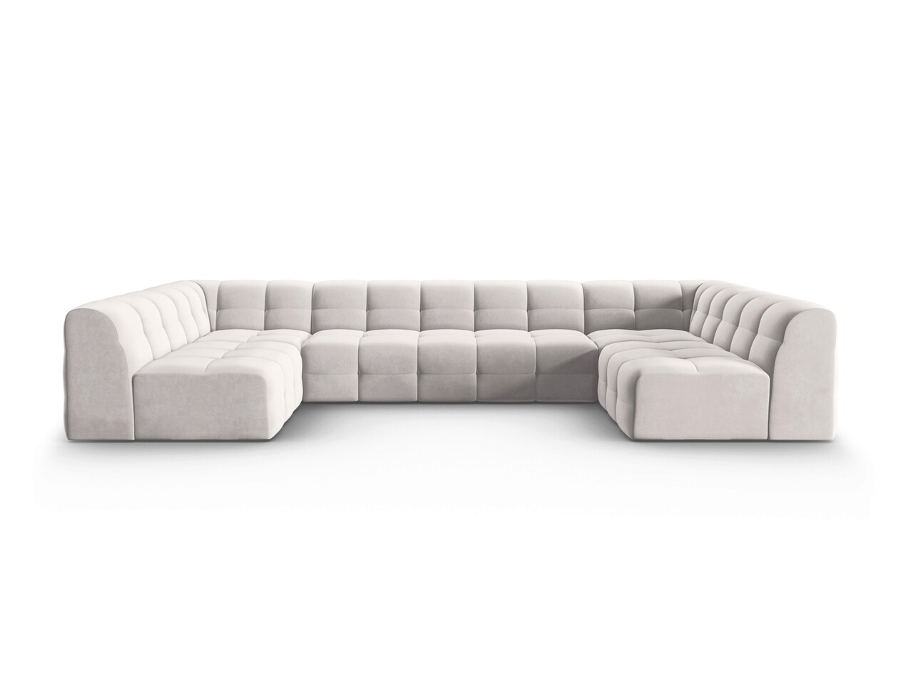 Canapea panoramica 7 locuri, Kendal, Micadoni Home, BL, 372x203x79 cm, catifea, gri deschis