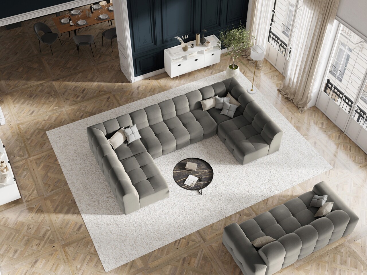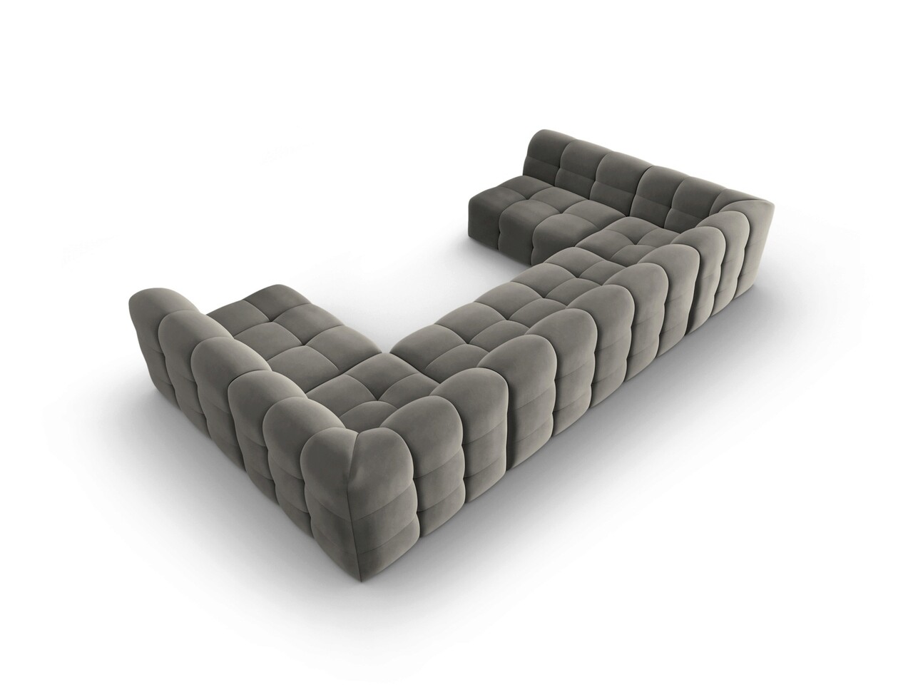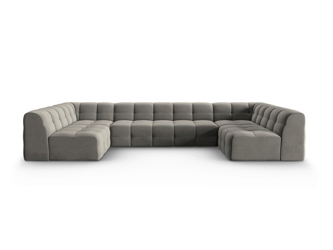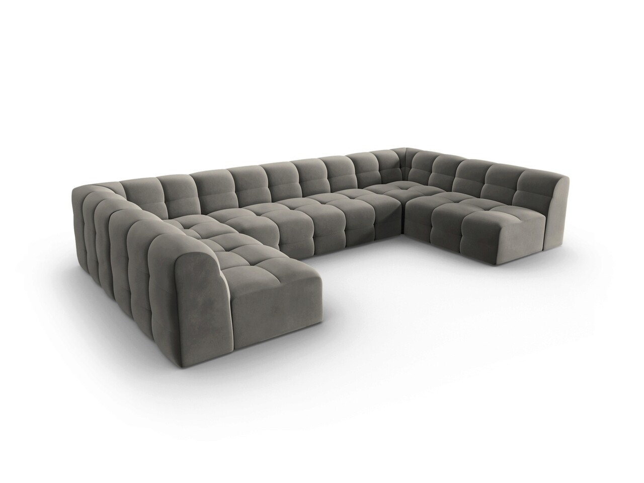 Canapea panoramica 7 locuri, Kendal, Micadoni Home, BL, 372x203x79 cm, catifea, gri inchis