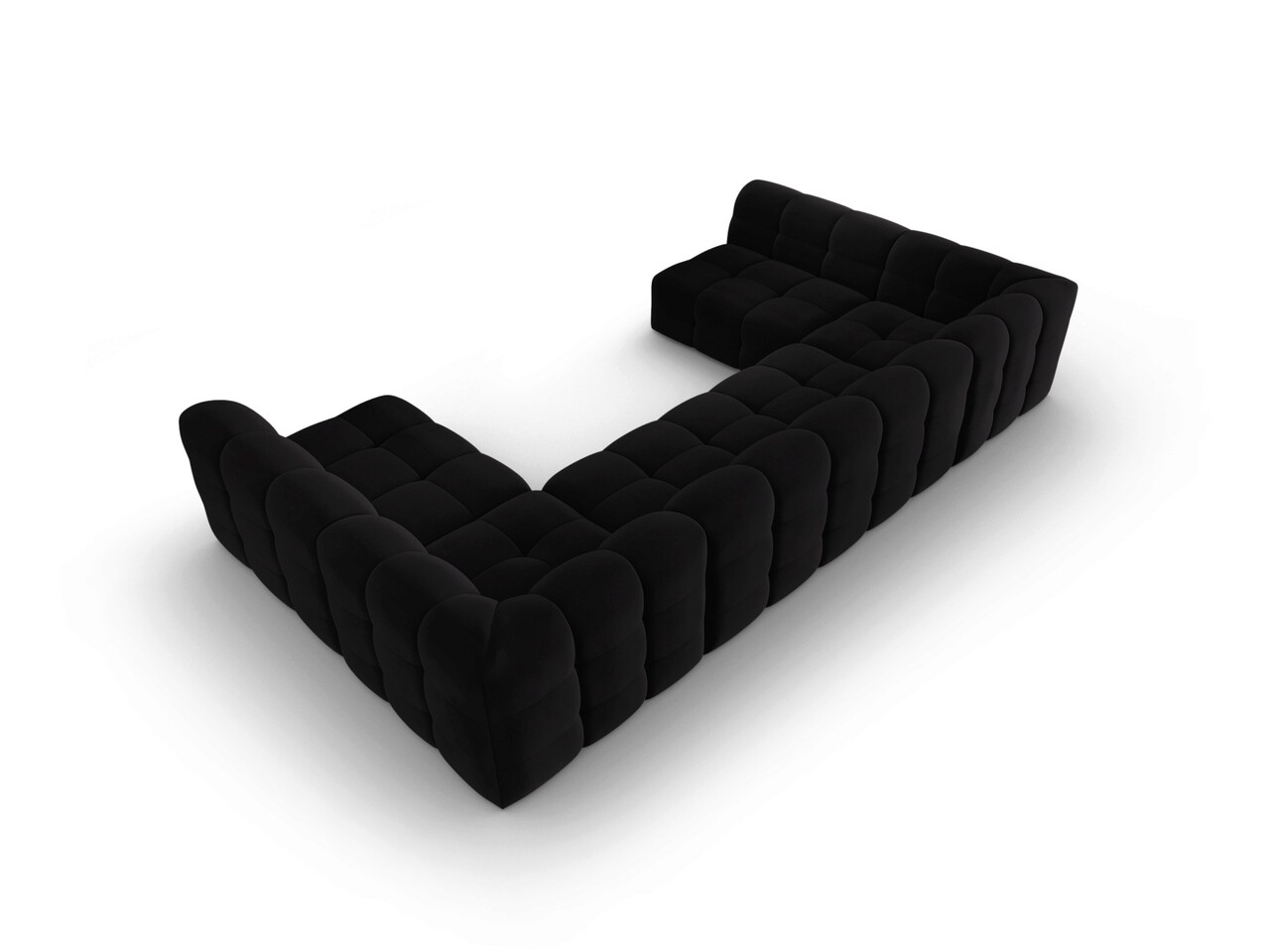 Canapea panoramica 7 locuri, Kendal, Micadoni Home, BL, 372x203x79 cm, catifea, negru