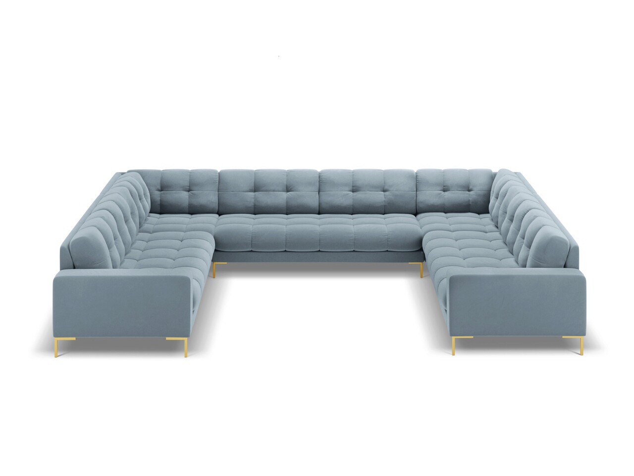 Canapea panoramica 9 locuri, Mamaia, Micadoni Home, GL, 337x256x75 cm, catifea, albastru deschis