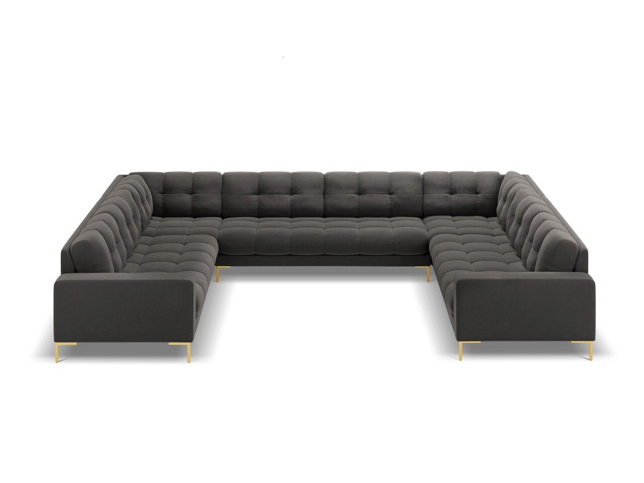 Canapea panoramica 9 locuri, Mamaia, Micadoni Home, GL, 337x256x75 cm, catifea, gri inchis