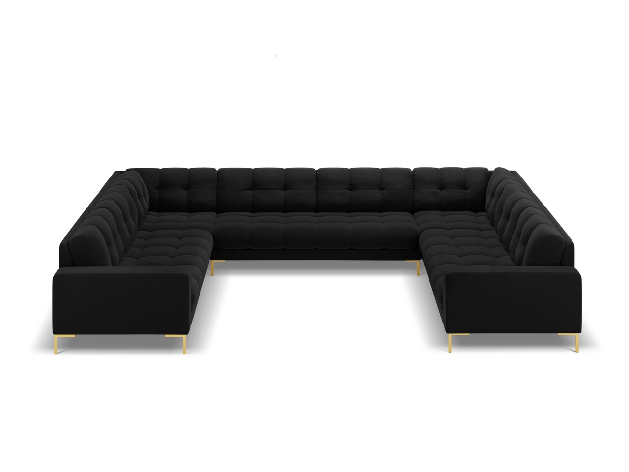 Canapea panoramica 9 locuri, Mamaia, Micadoni Home, GL, 337x256x75 cm, catifea, negru