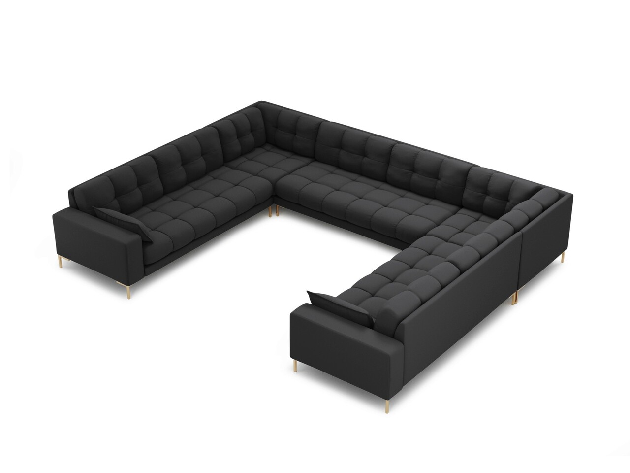Canapea panoramica 9 locuri, Mamaia, Micadoni Home, GL, 337x256x75 cm, tesatura tip twill, gri inchis