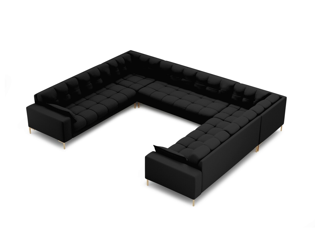 Canapea panoramica 9 locuri, Mamaia, Micadoni Home, GL, 337x256x75 cm, tesatura tip twill, negru