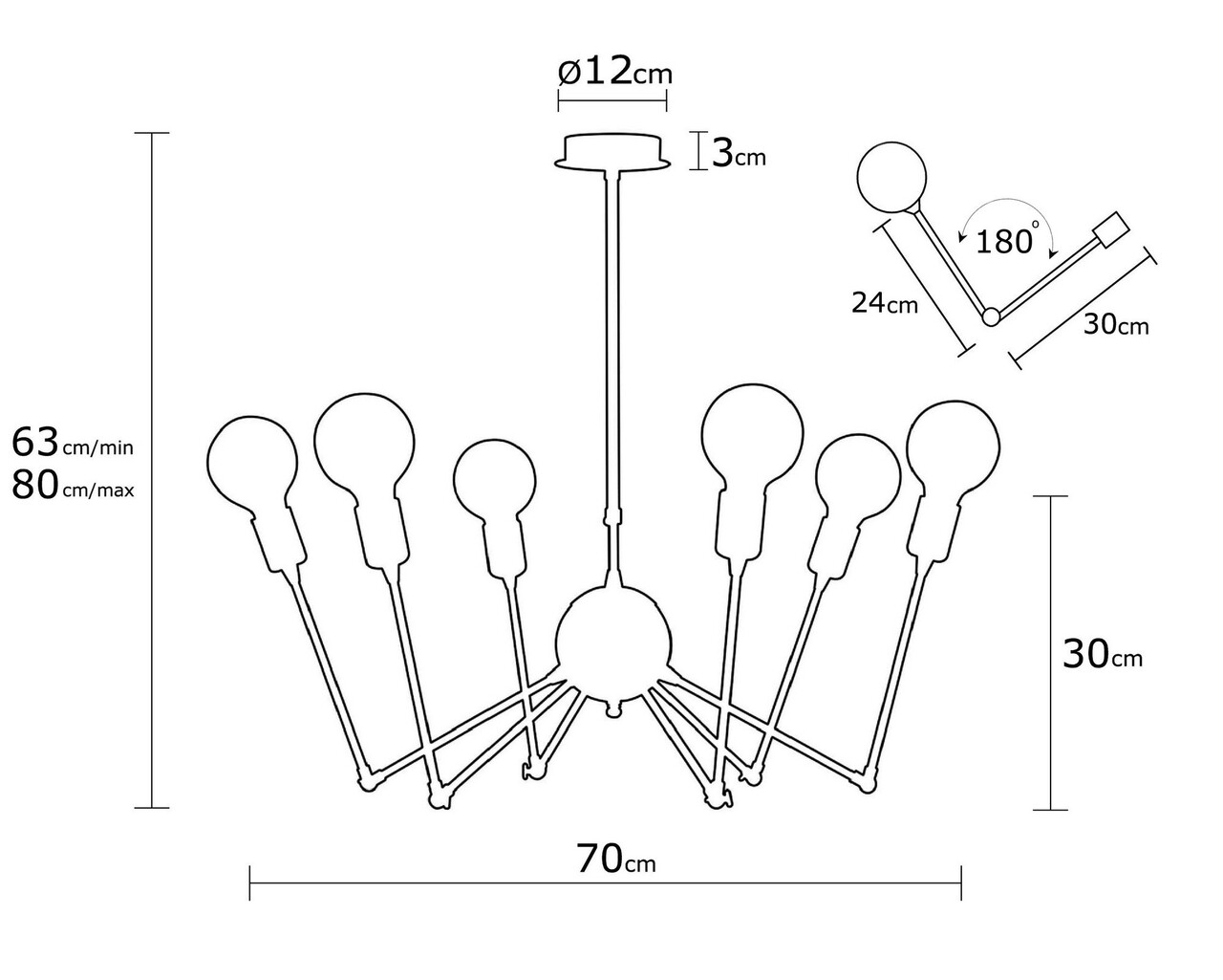 Candelabru Harput N-1313, Noor, 70 x 80 cm, 6 x E27, 100W, negru