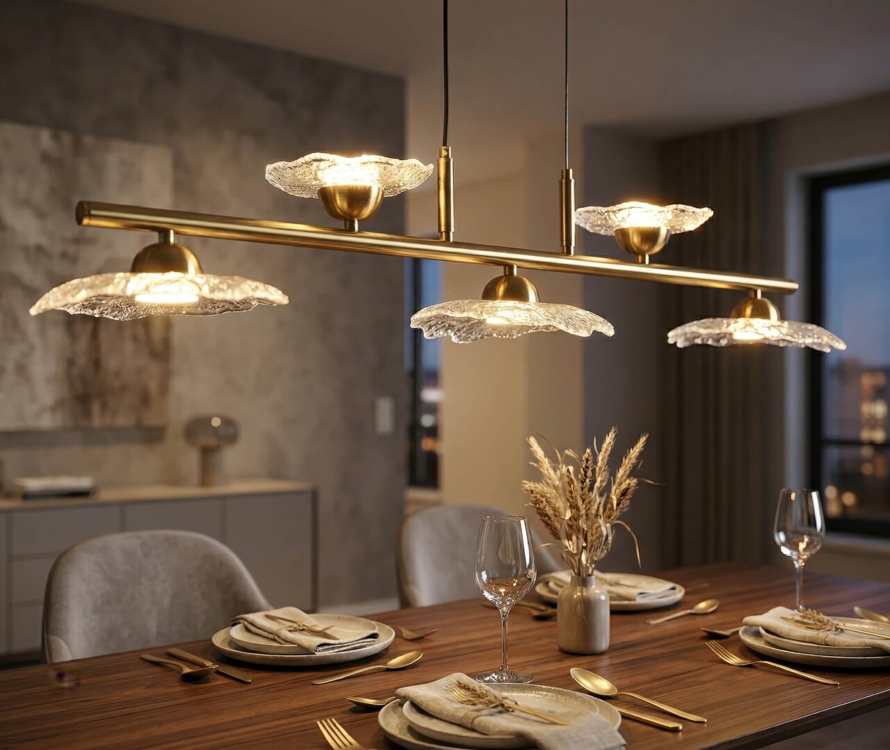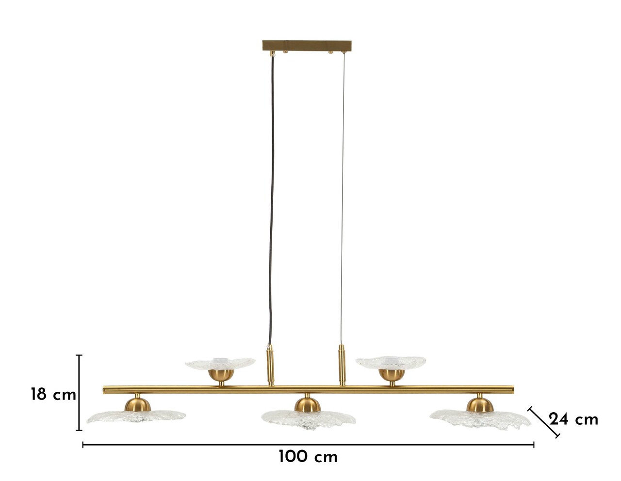 Candelabru, Mauro Ferretti, Emily, 5 x E27, 40W, 100x18x24 cm, fier/sticla, auriu/transparent