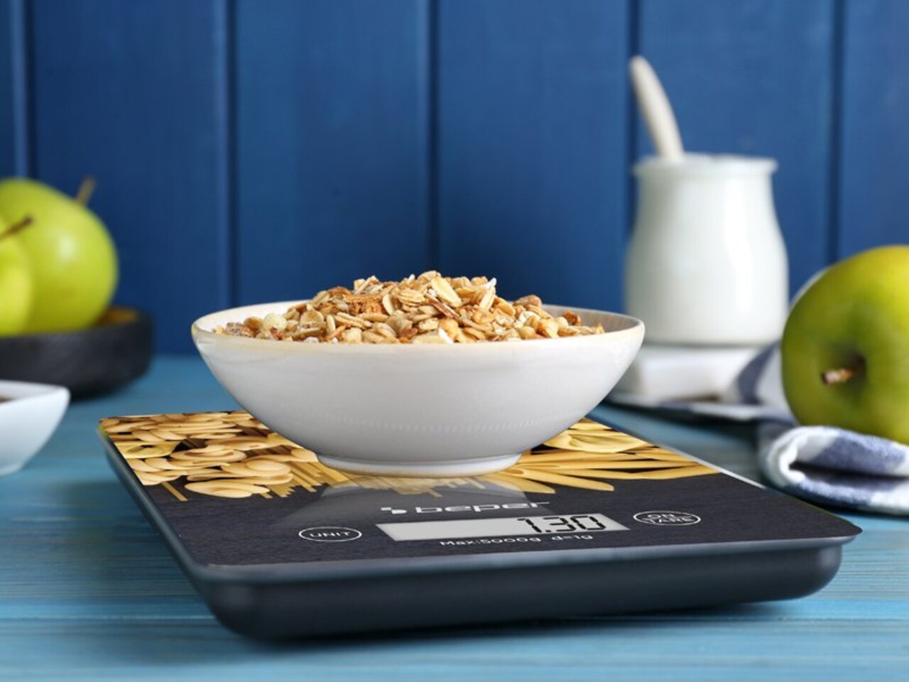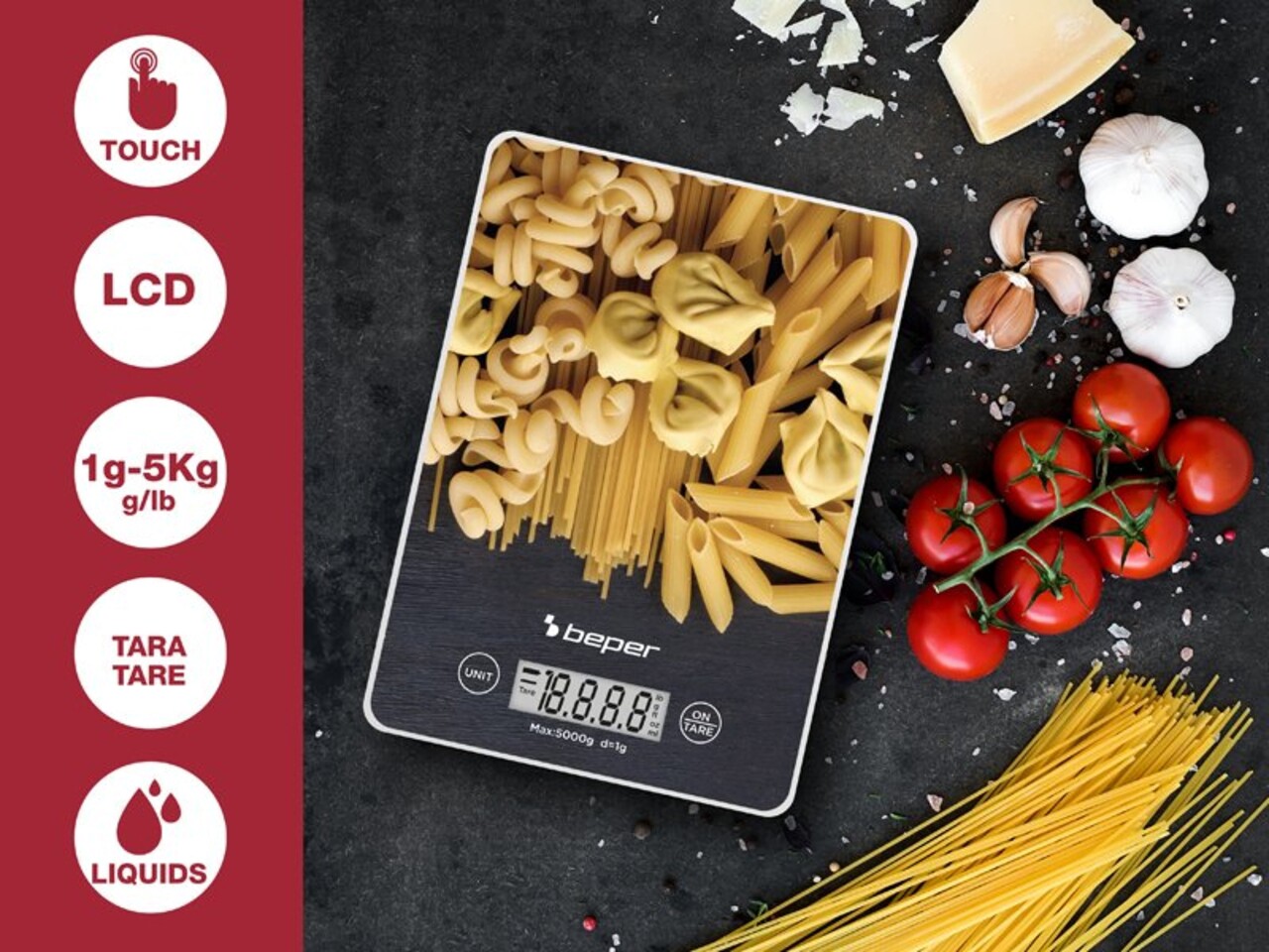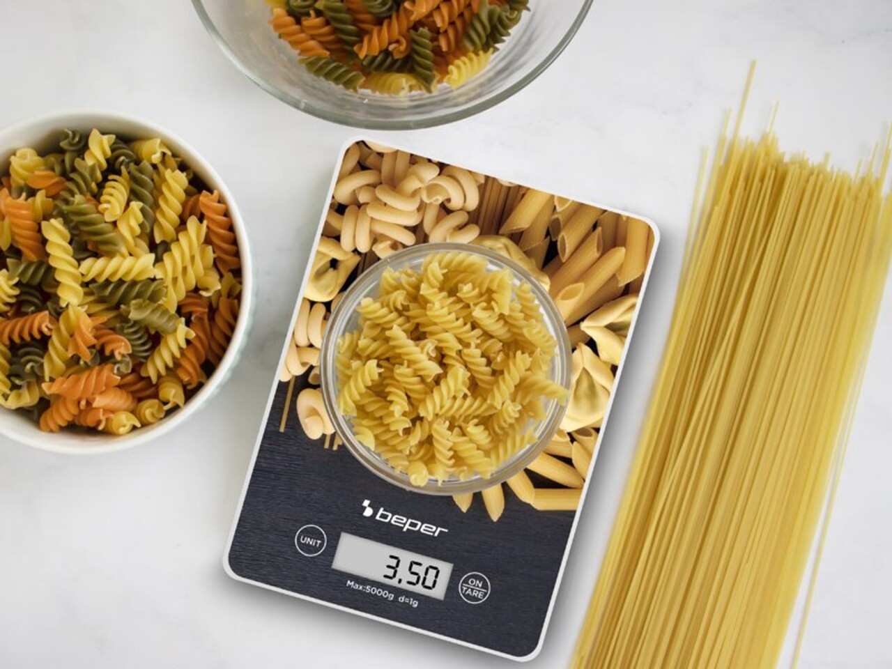 Cantar digital de bucatarie Beper, 15x21.5x1.5 cm, sticla, gri