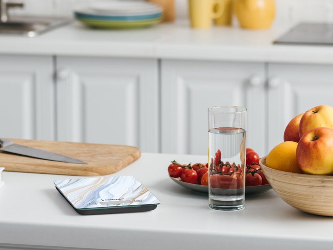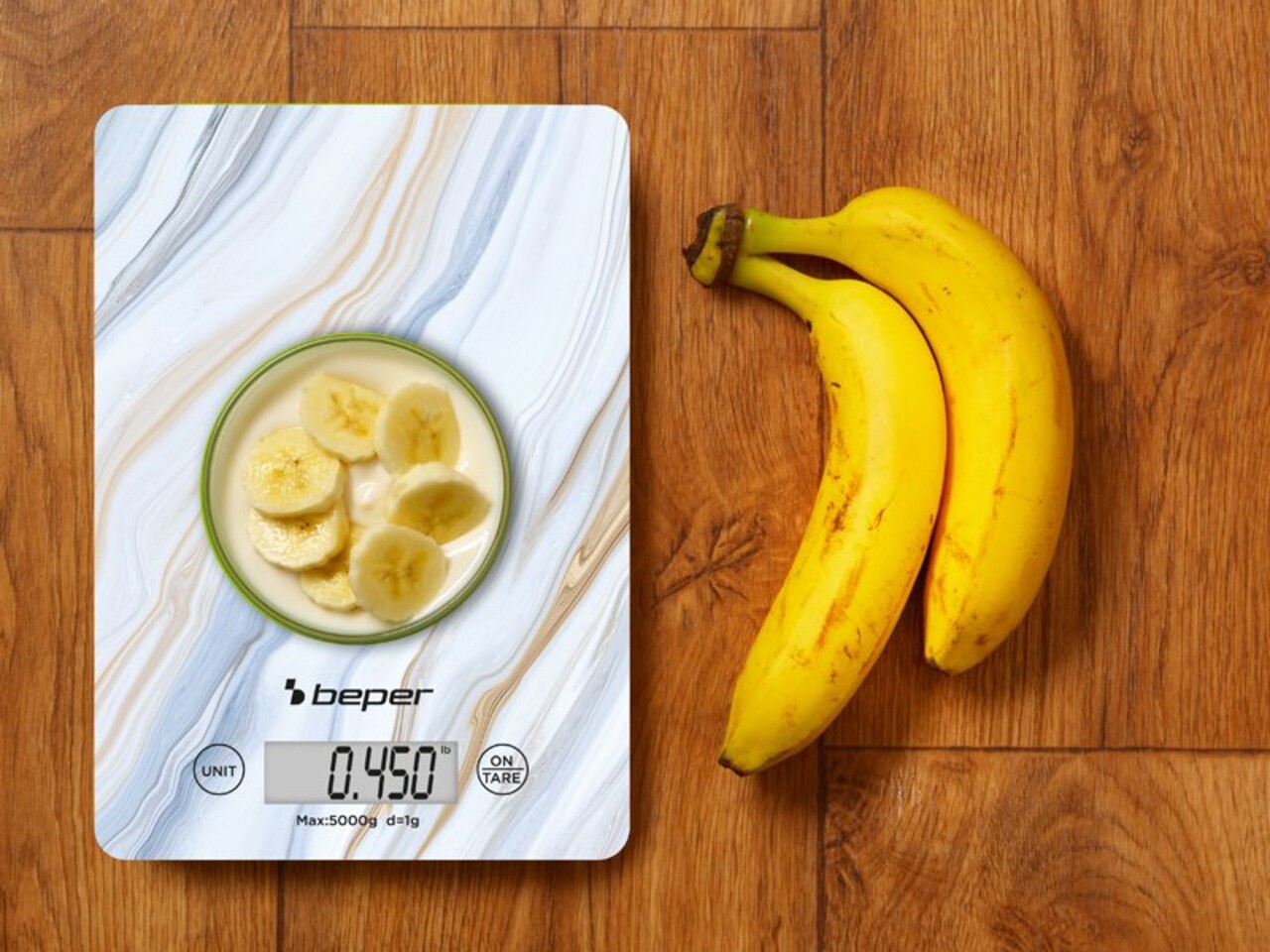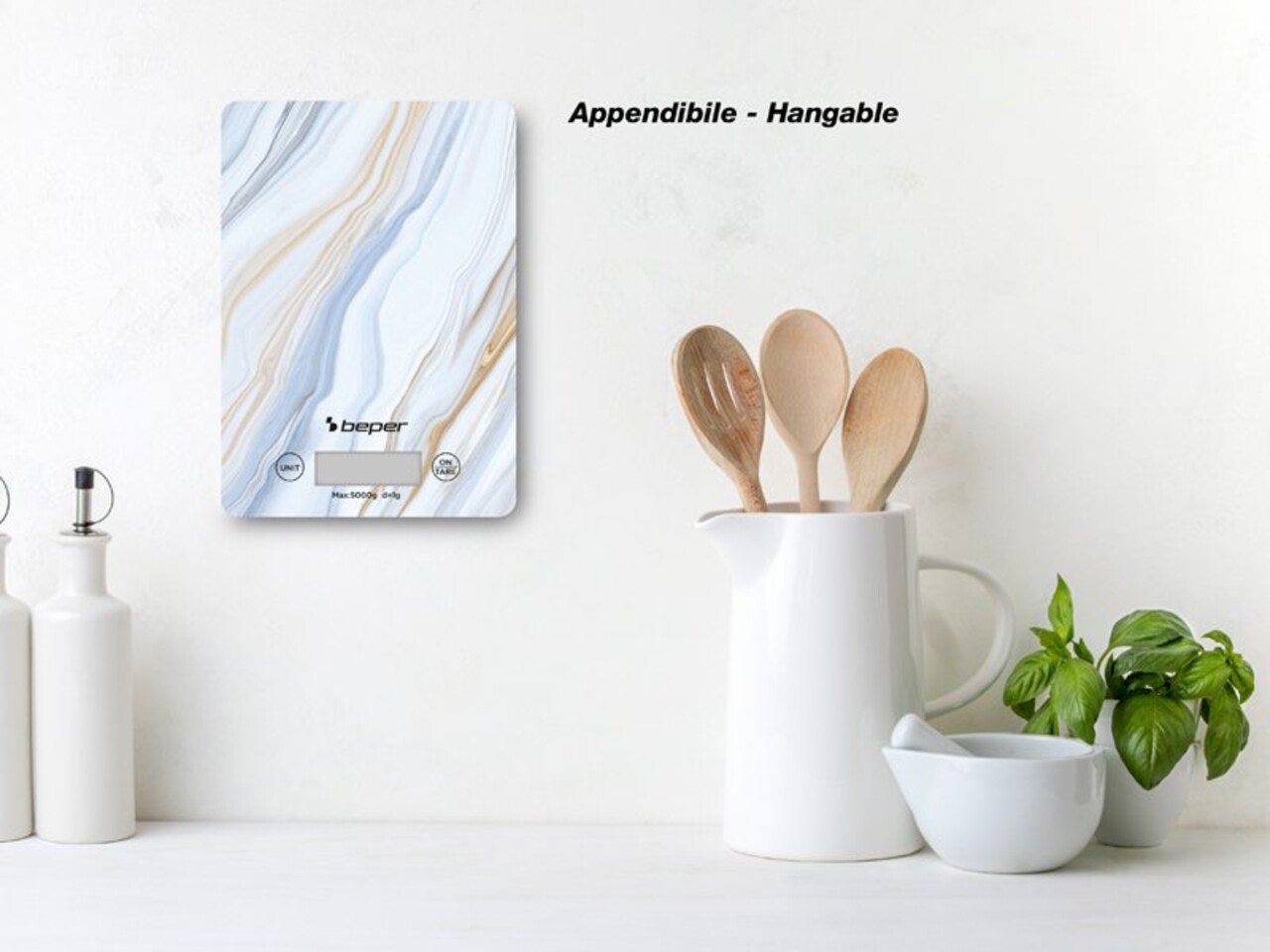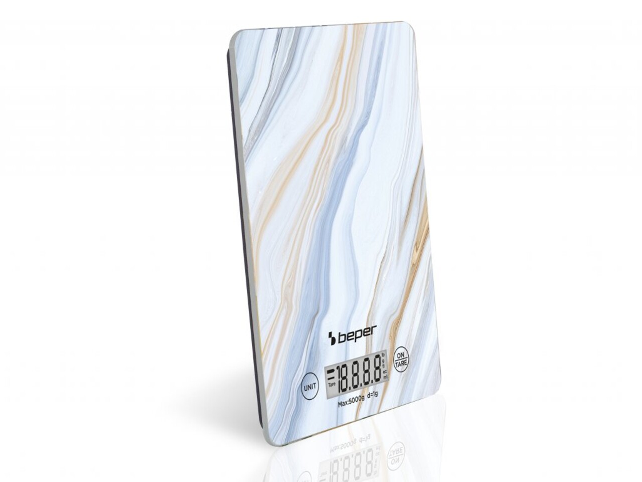 Cantar digital de bucatarie Beper, 15x21.5x1.5 cm, sticla, multicolor