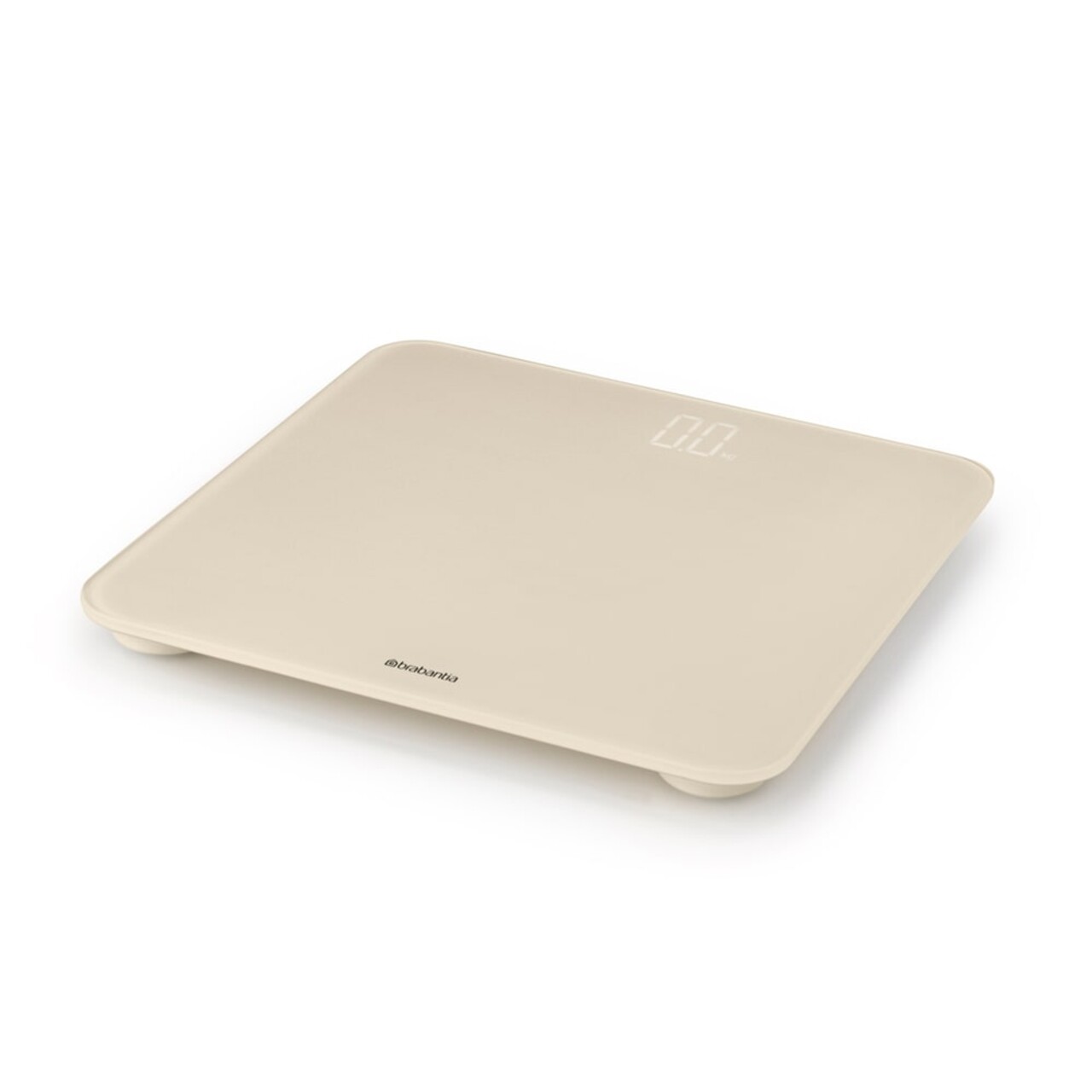 Cantar digital pentru baie, Brabantia, Soft Beige, 30x30x2.4 cm, max 180 kg, sticla, bej