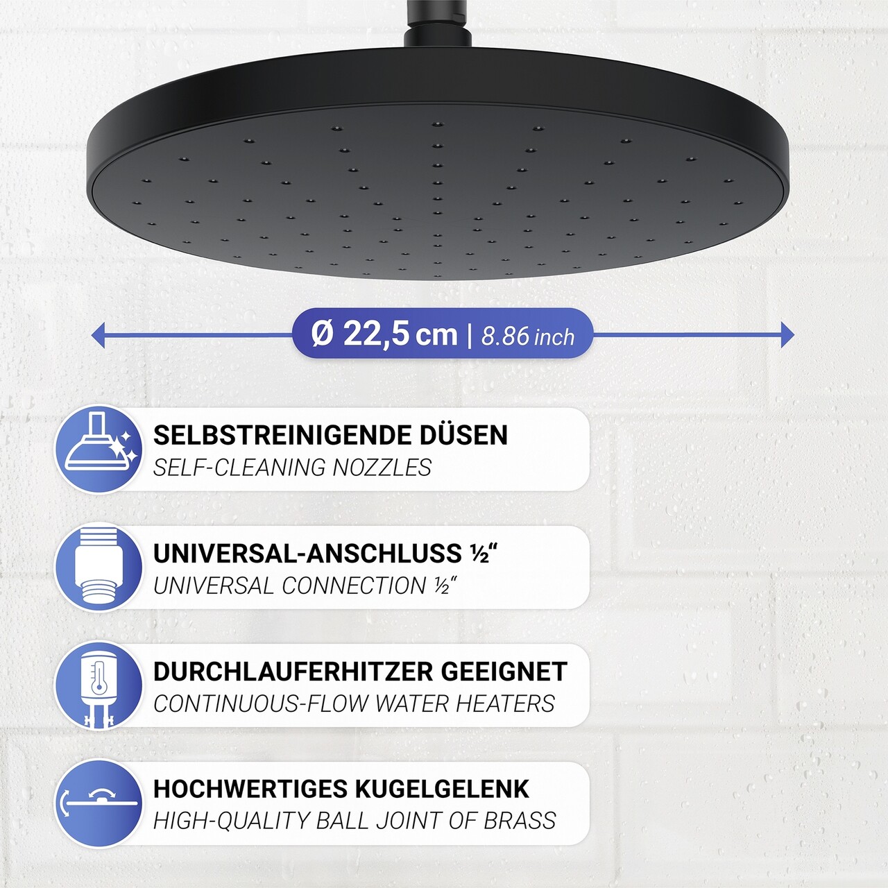 Cap de dus Clean, Wenko, 22.5 cm, ABS, negru