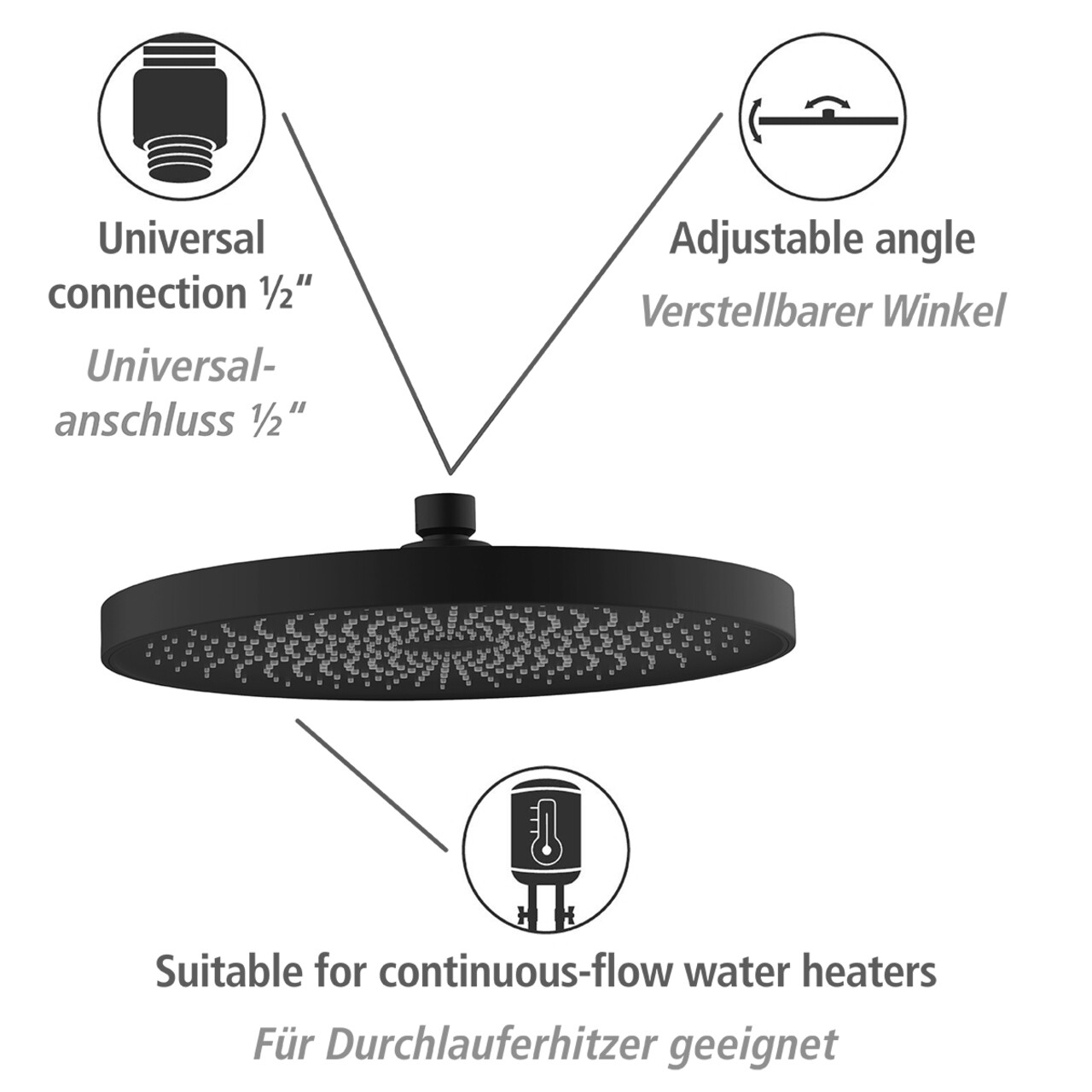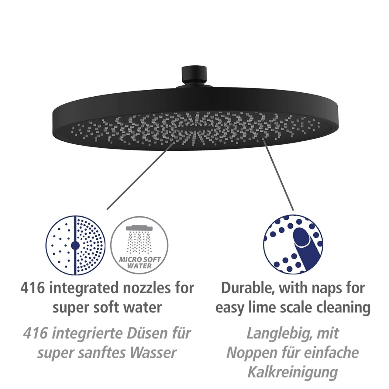Cap de dus Softwater, Wenko, 26 cm, ABS, negru