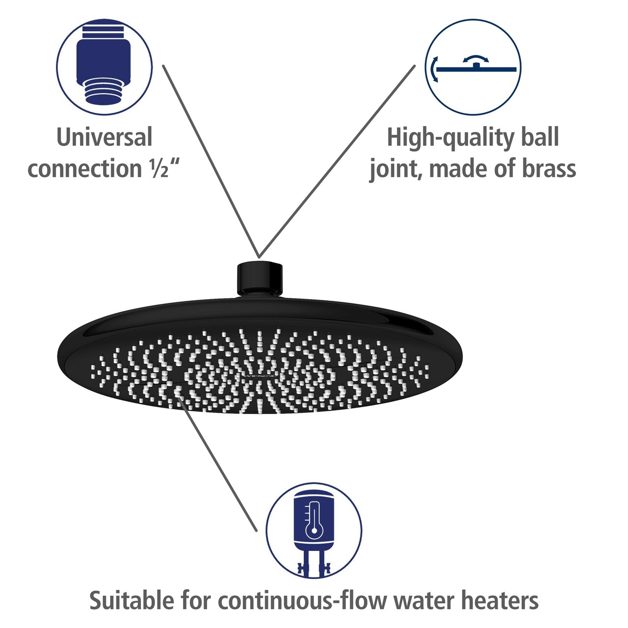Cap de dus superior, Wenko, Rain Shower Water Saving, 22.5 x 22.5 cm, plastic, negru
