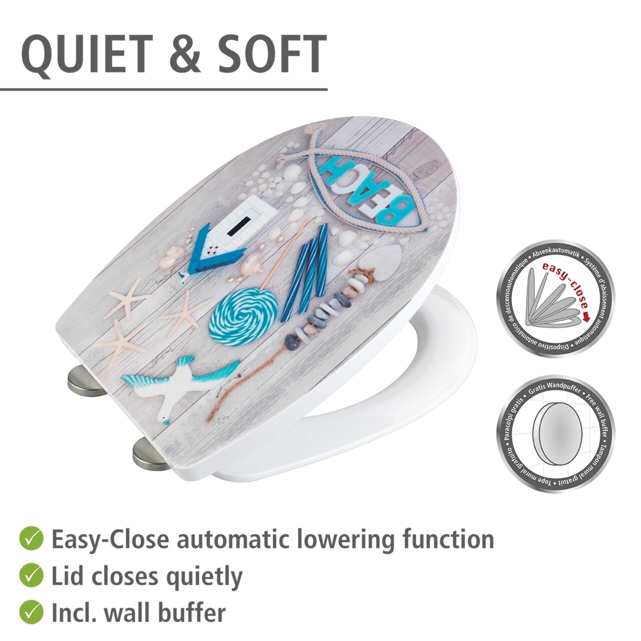Capac de toaleta Beach, Wenko, 36.5x45 cm, termoplastic/inox, multicolor