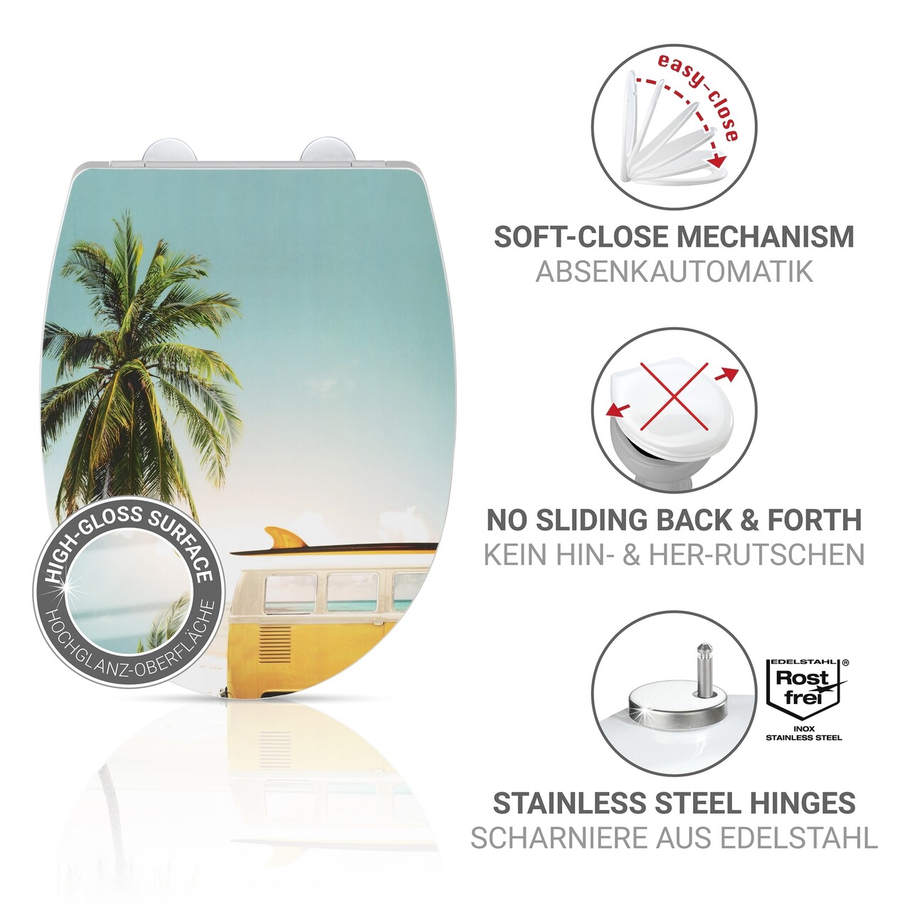 Capac de toaleta cu sistem automat de coborare Corbara, Wenko, 36.5x45 cm, termoplastic/inox, multicolor