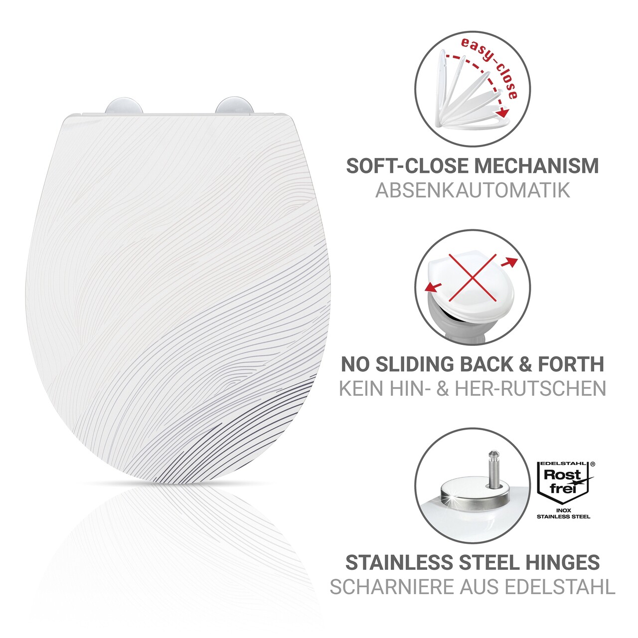 Capac de toaleta cu sistem automat de coborare Menin, Wenko, 37x44.5 cm, duroplast/inox, multicolor