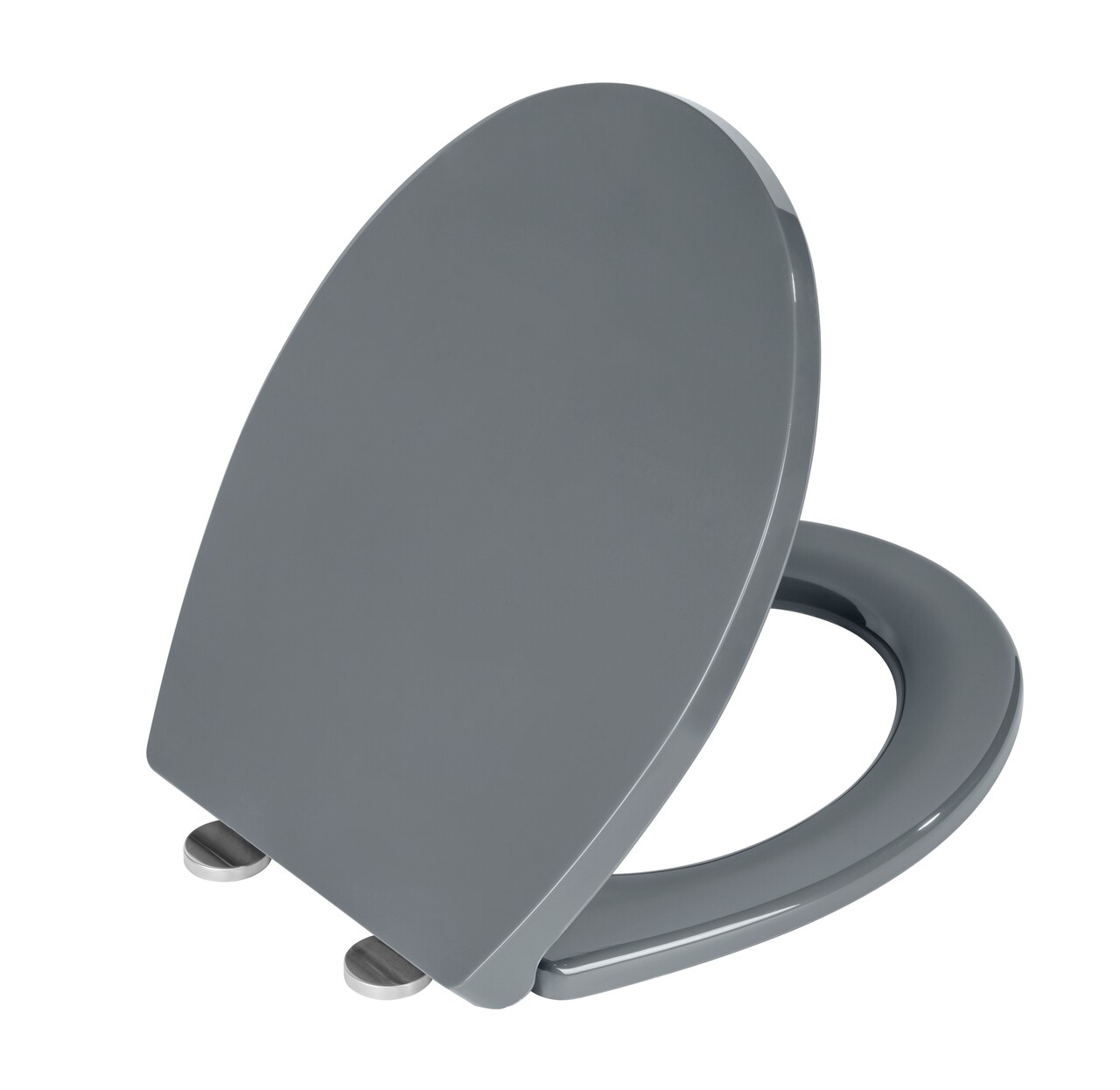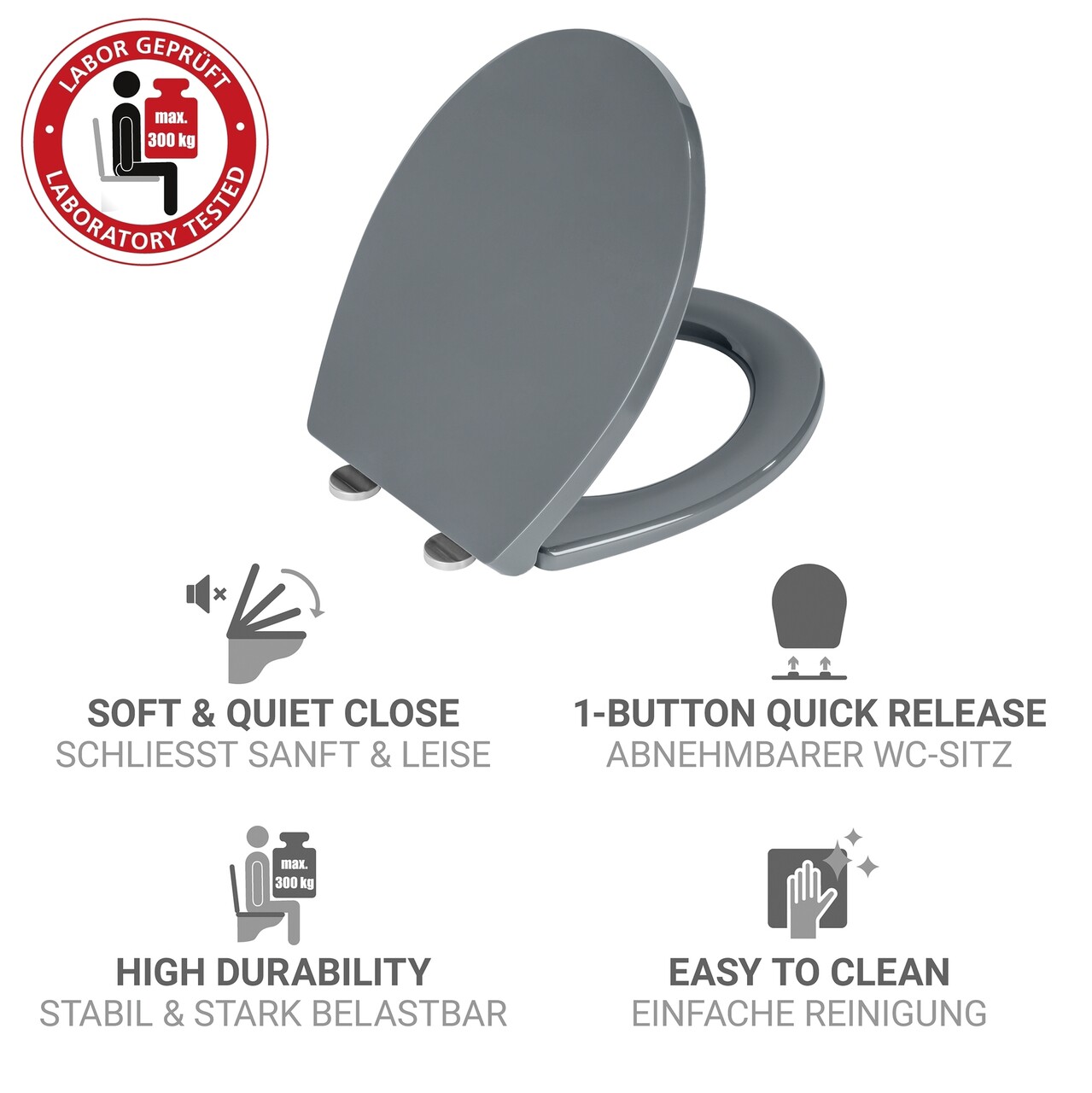 Capac de toaleta cu sistem automat de coborare Ostuni, Wenko, 37x44.5 cm, termoplastic/inox, gri
