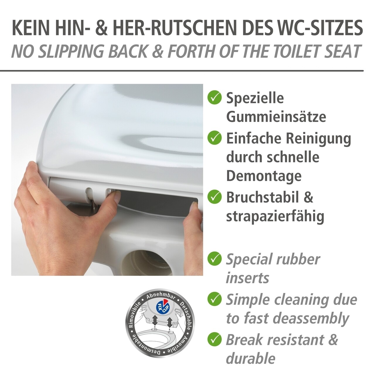 Capac de toaleta cu sistem automat de coborare, Wenko, Premium Ottana, 37.5 x 44.5 cm, duroplast, gri