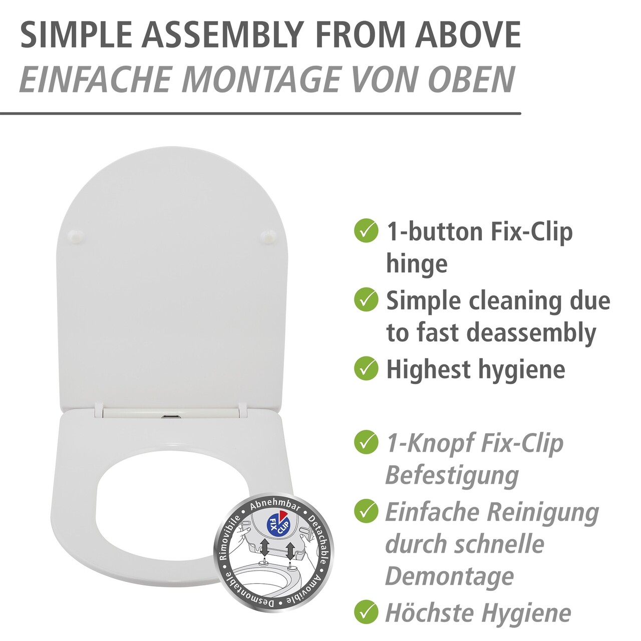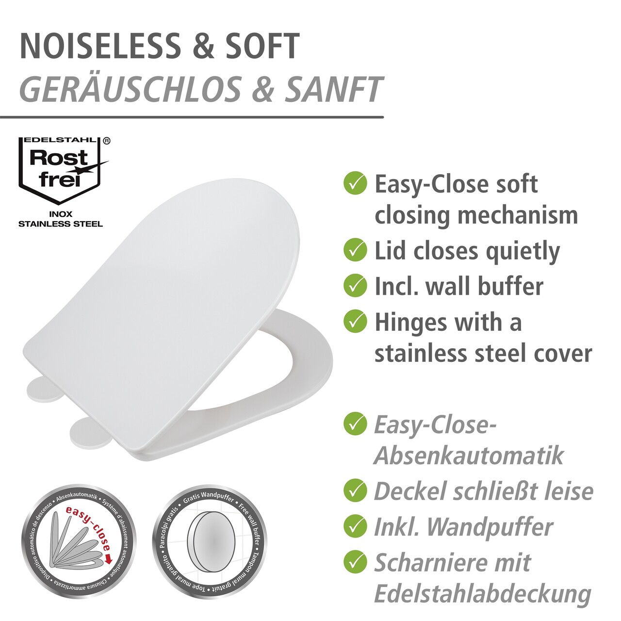 Capac de toaleta Galati, Wenko, 36x46 cm, duroplast/inox, alb