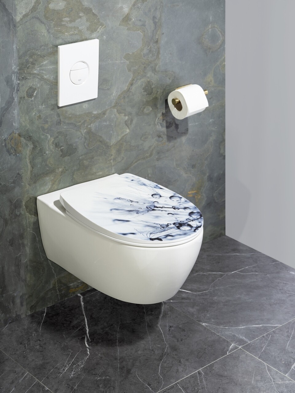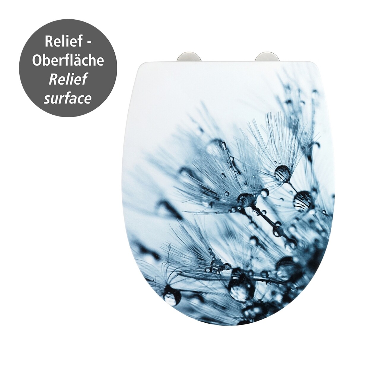 Capac de toaleta Relief, Wenko, 36.5x45 cm, termoplastic/inox, albastru/alb