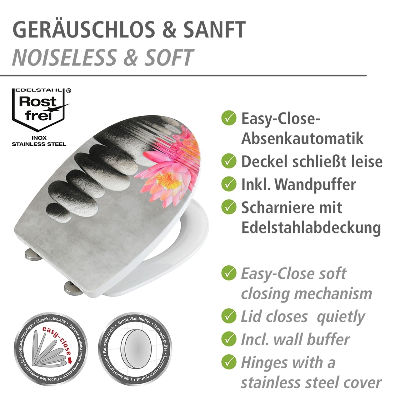 Capac de toaleta Relief, Wenko, 36.5x45 cm, termoplastic/inox, gri/roz
