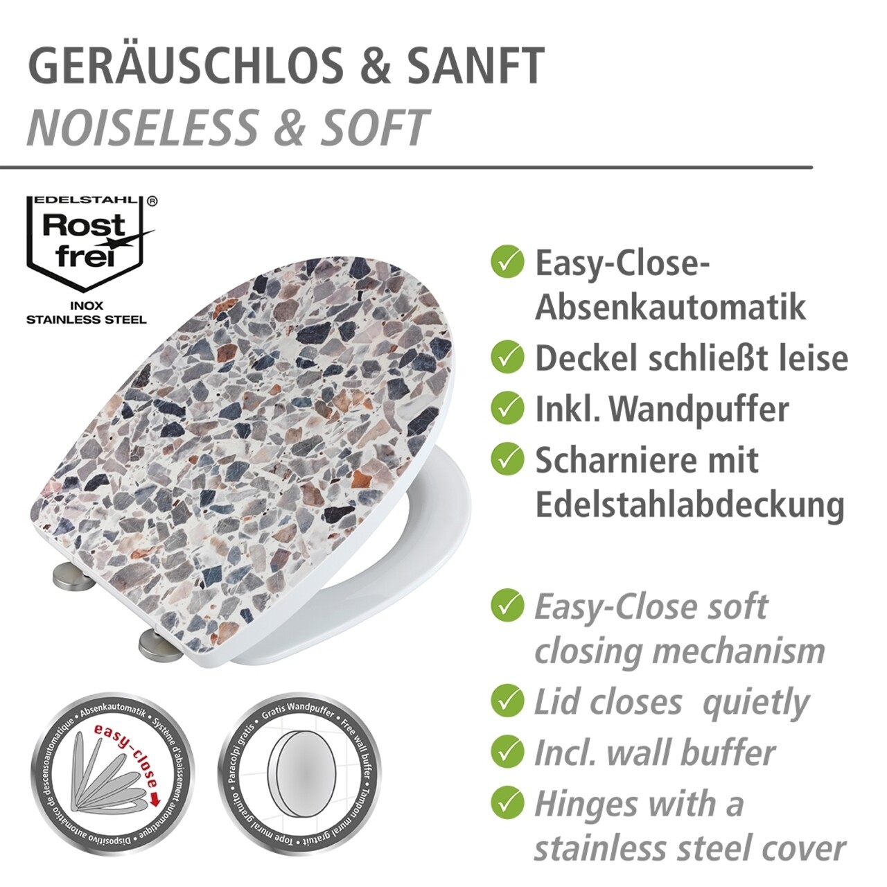 Capac de toaleta Terrazzo, Wenko, 36.5x45 cm, termoplastic/inox, multicolor