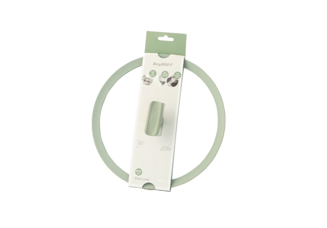 Capac din sticla BergHOFF, Leo Balance Sage, Ø28 cm, margine din silicon, verde